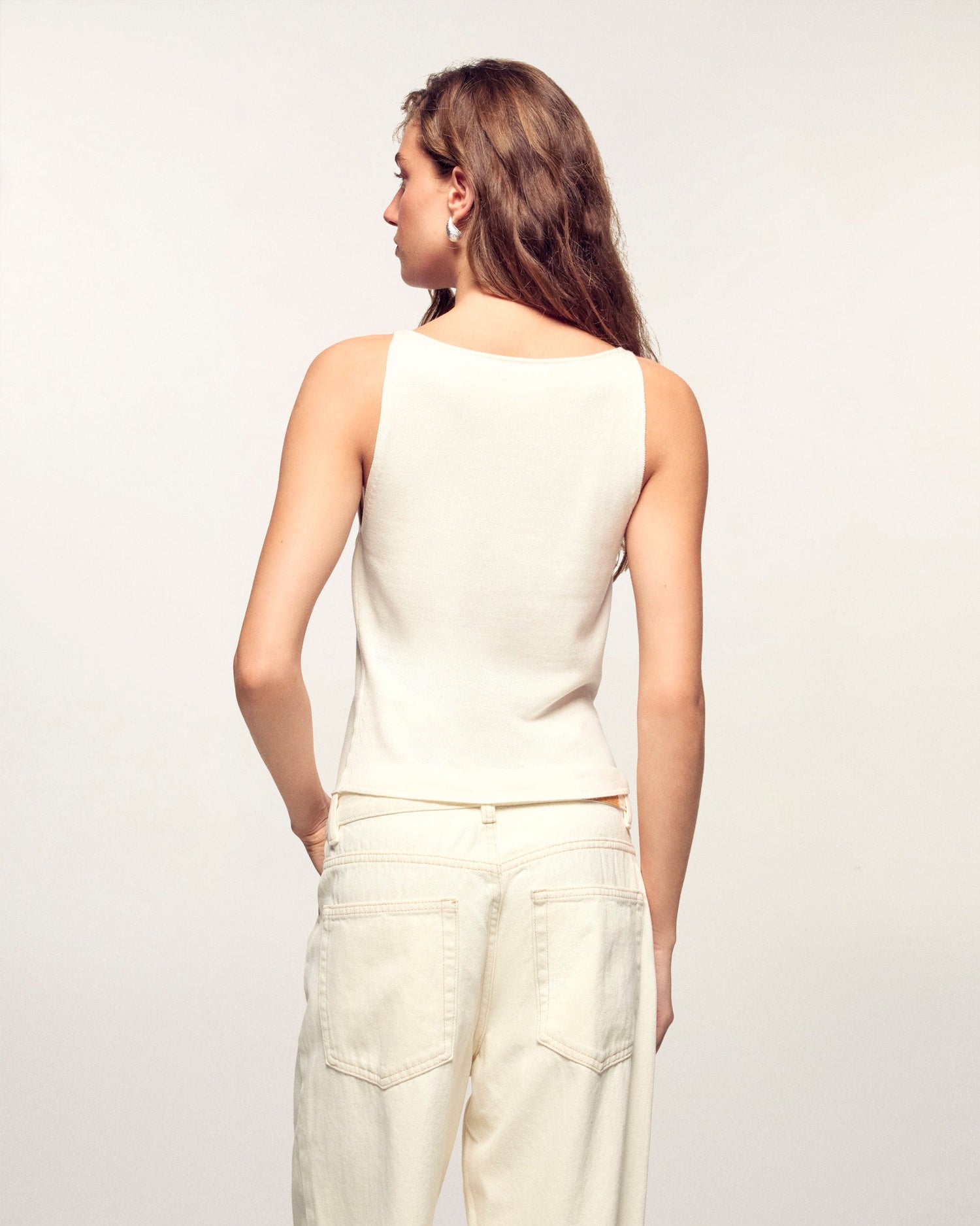 Un must-have rivisitato con eleganza, questa canotta punta sulla delicatezza dei suoi dettagli. Realizzata in lana merino extrafine di alta qualità, sfoggia una vestibilità aderente ed essenziale. La sua particolarità risiede nelle spalline ornate da gioielli dorati siglati "FF", che donano un tocco luminoso e sofisticato a questo capo minimalista.