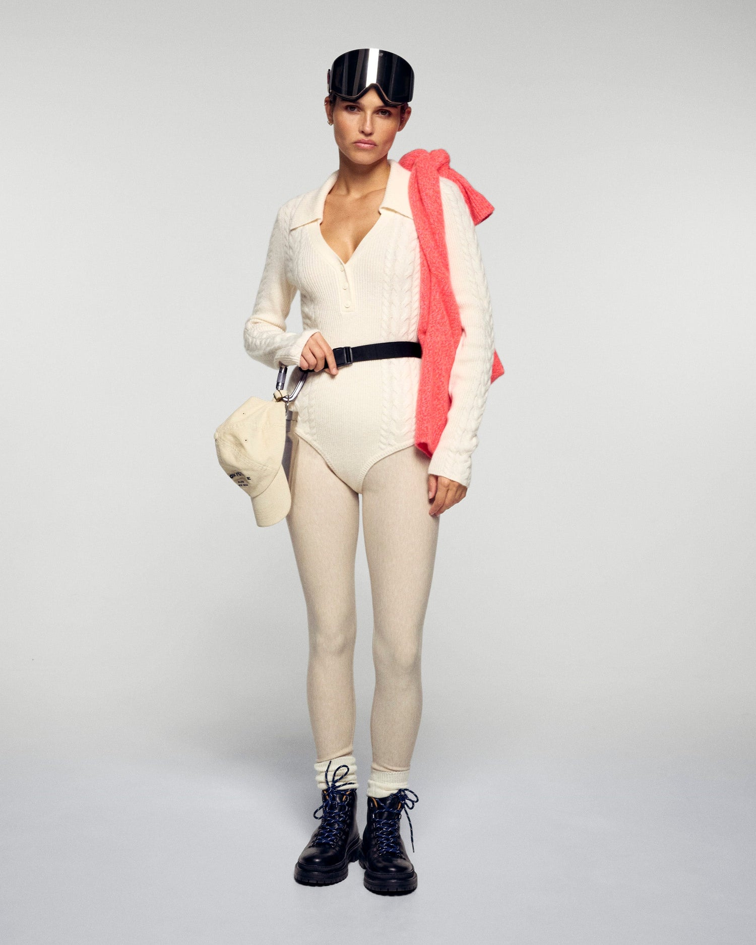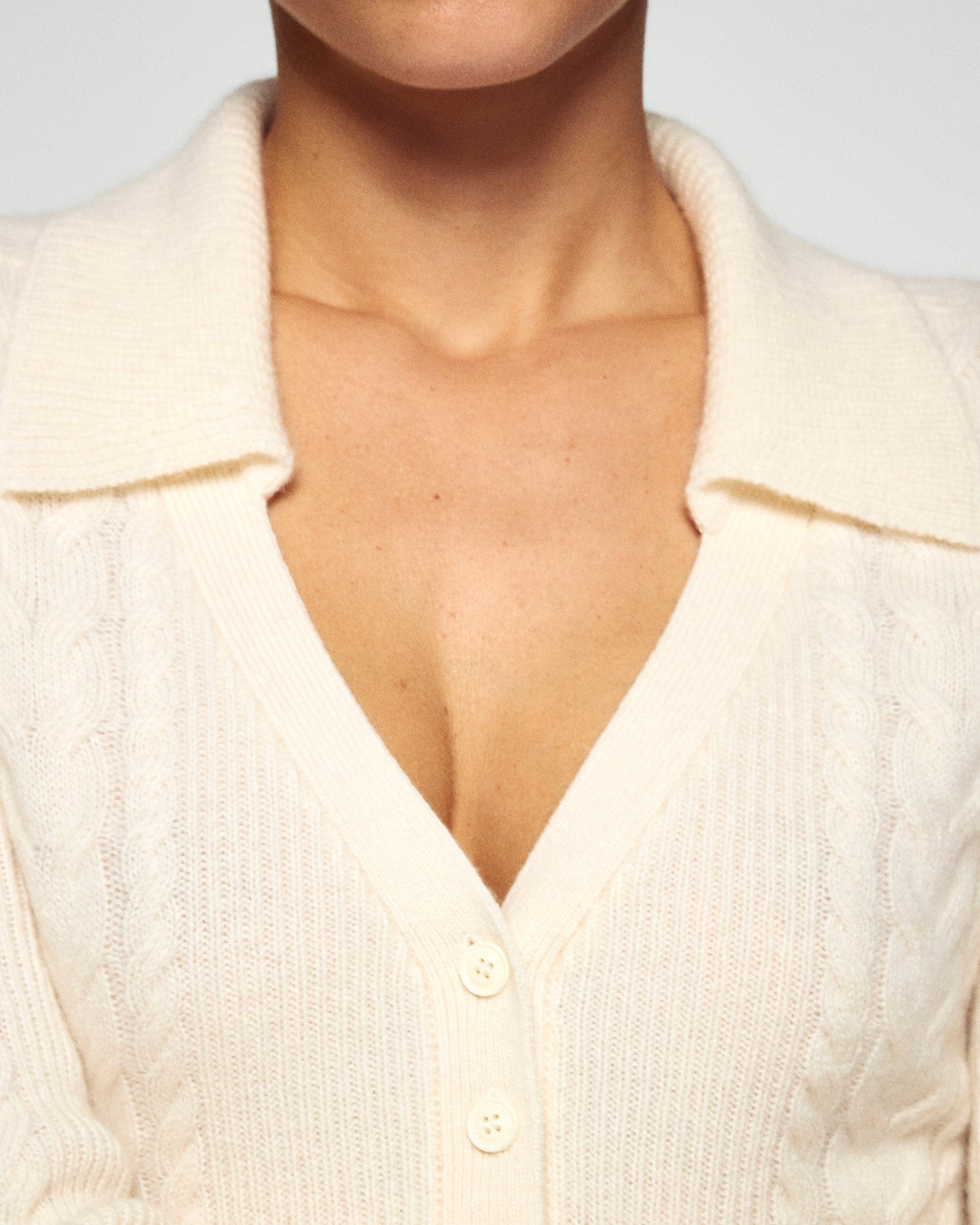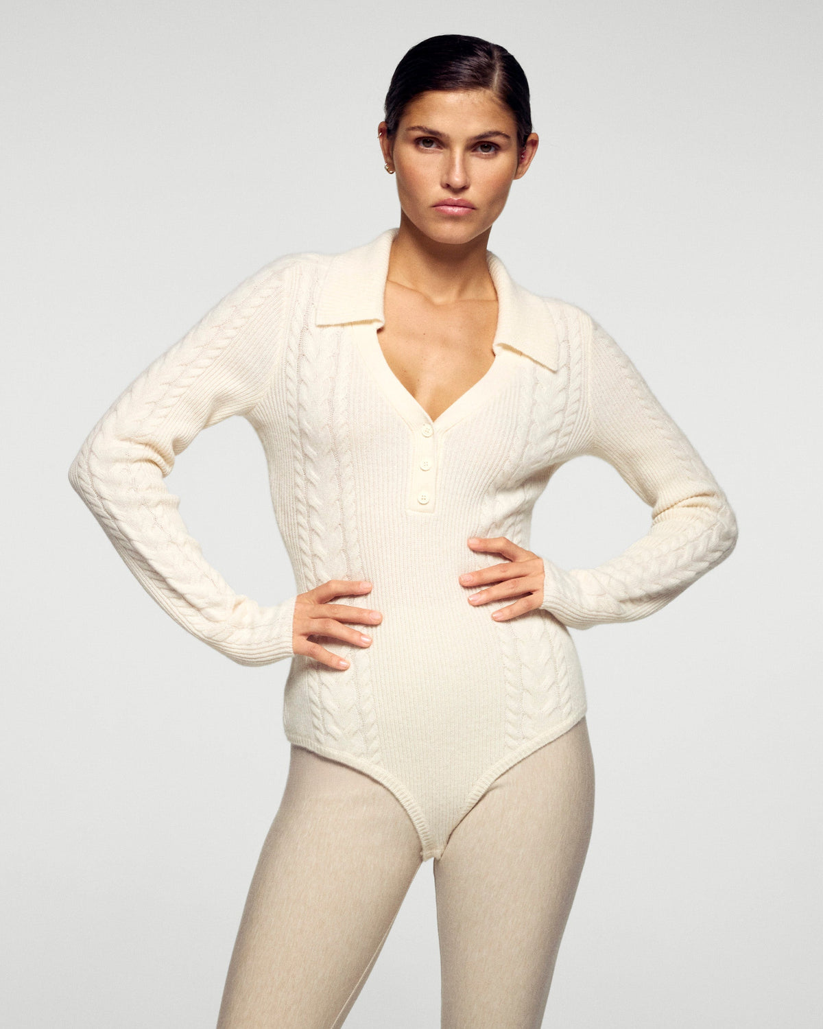 Body a maniche lunghe a trecce - 100% Cashmere - Verificato GCS - Ecrù