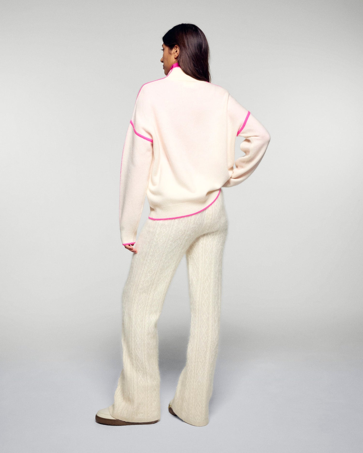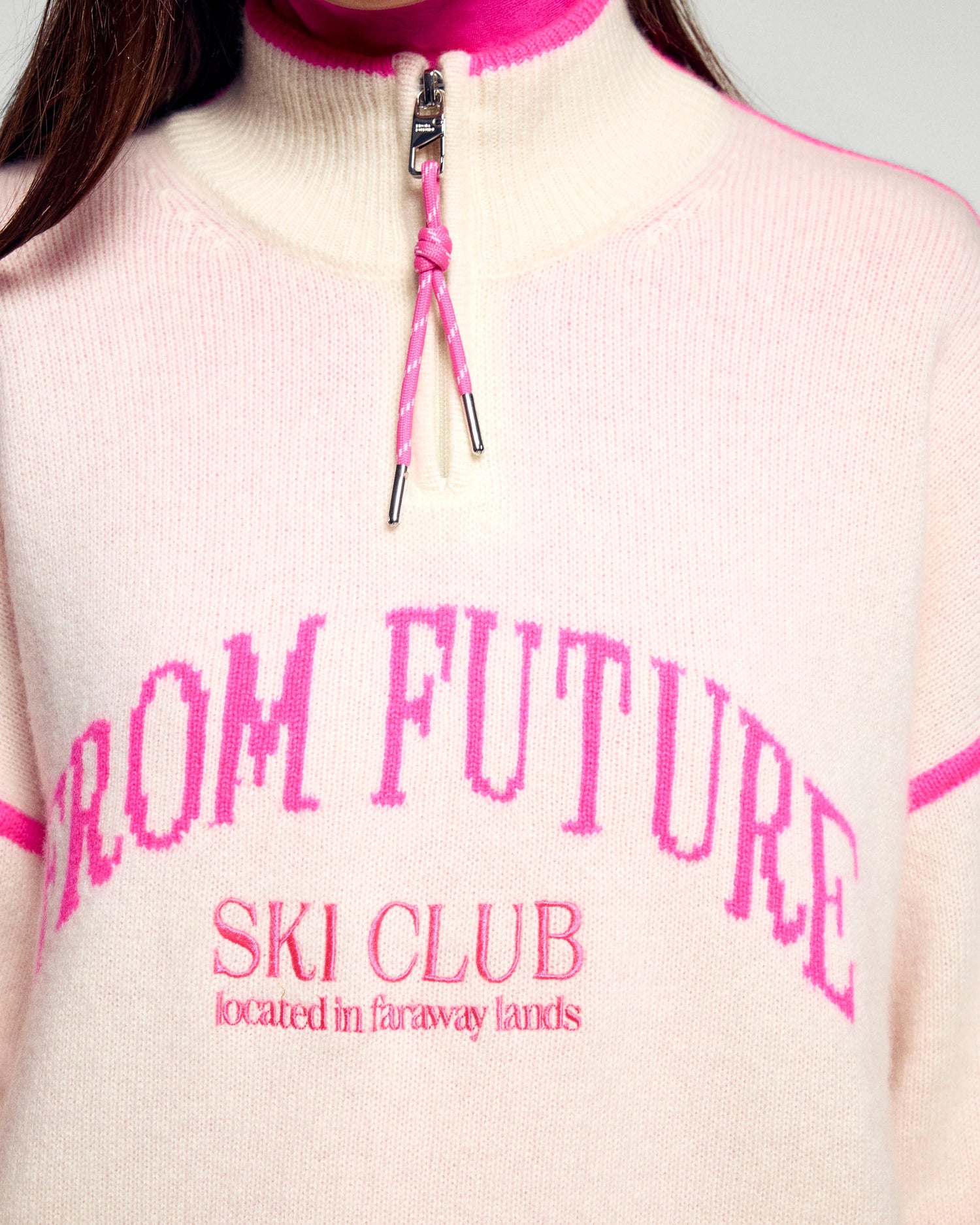 - Collo alto con zip e cordoncino a contrasto