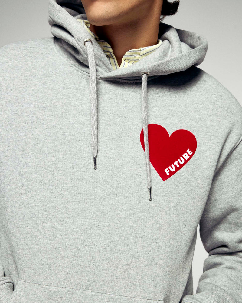 Con un cappuccio con cordoncini, una tasca davanti e maniche lunghe, questa felpa in cotone presenta un cuore floccato FUTURE sul petto.