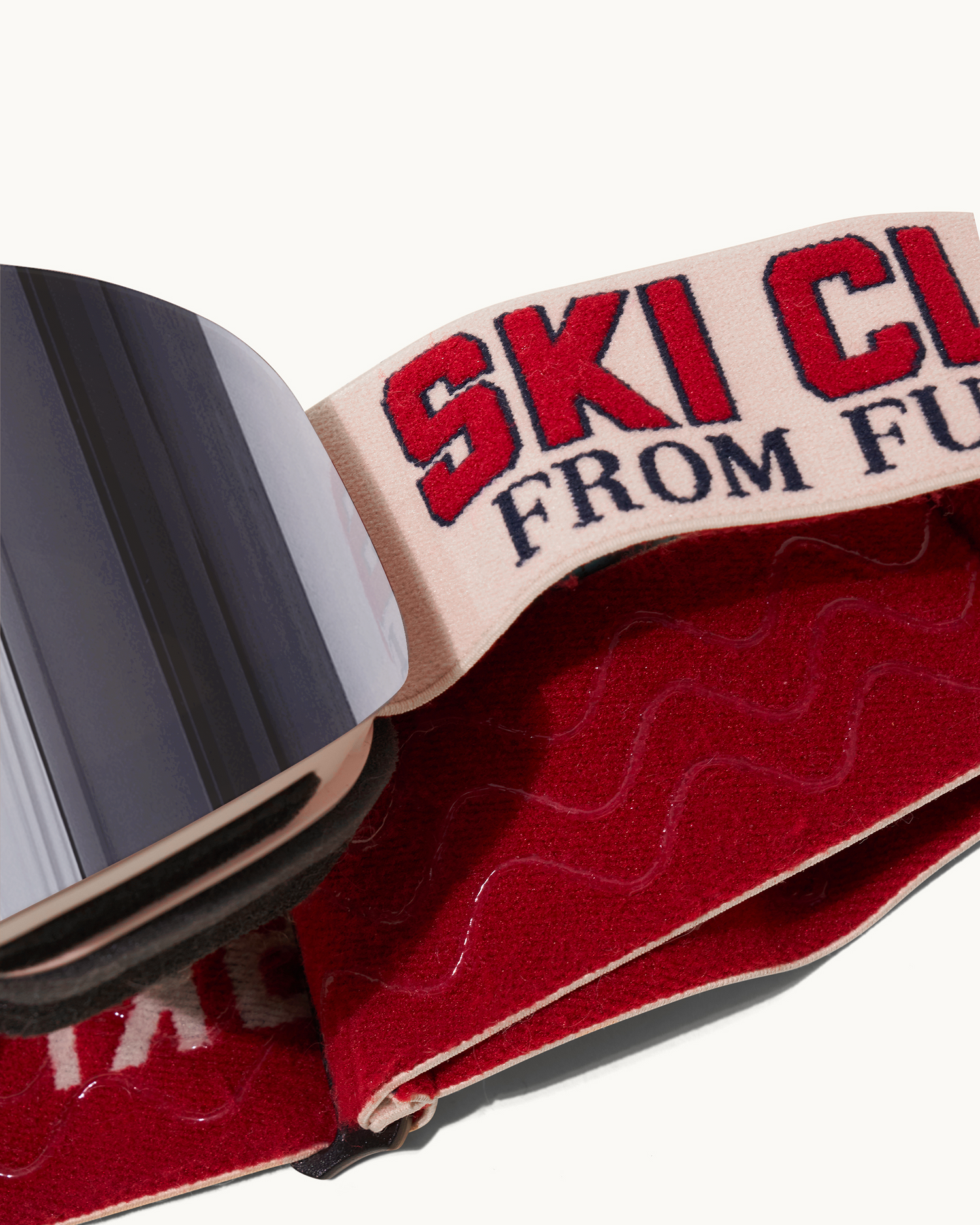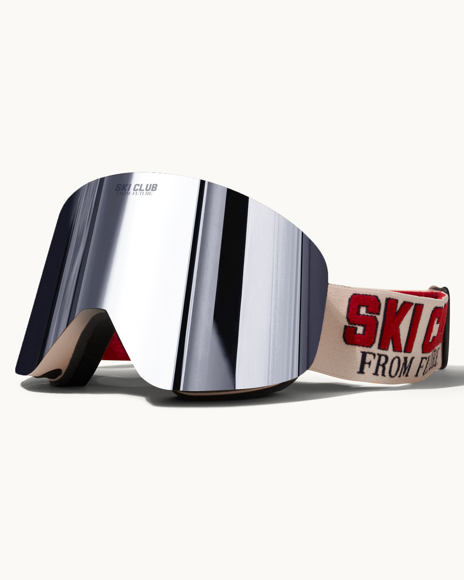 Distinguiti sulle piste con la nostra maschera da sci "SKI CLUB". Dotata di una spessa imbottitura in schiuma, si adatta facilmente alla tua testa grazie a una fascia regolabile e antiscivolo. La lente offre una protezione UV al 100%. Il trattamento a specchio sulla lente aiuta a ridurre l’abbagliamento.