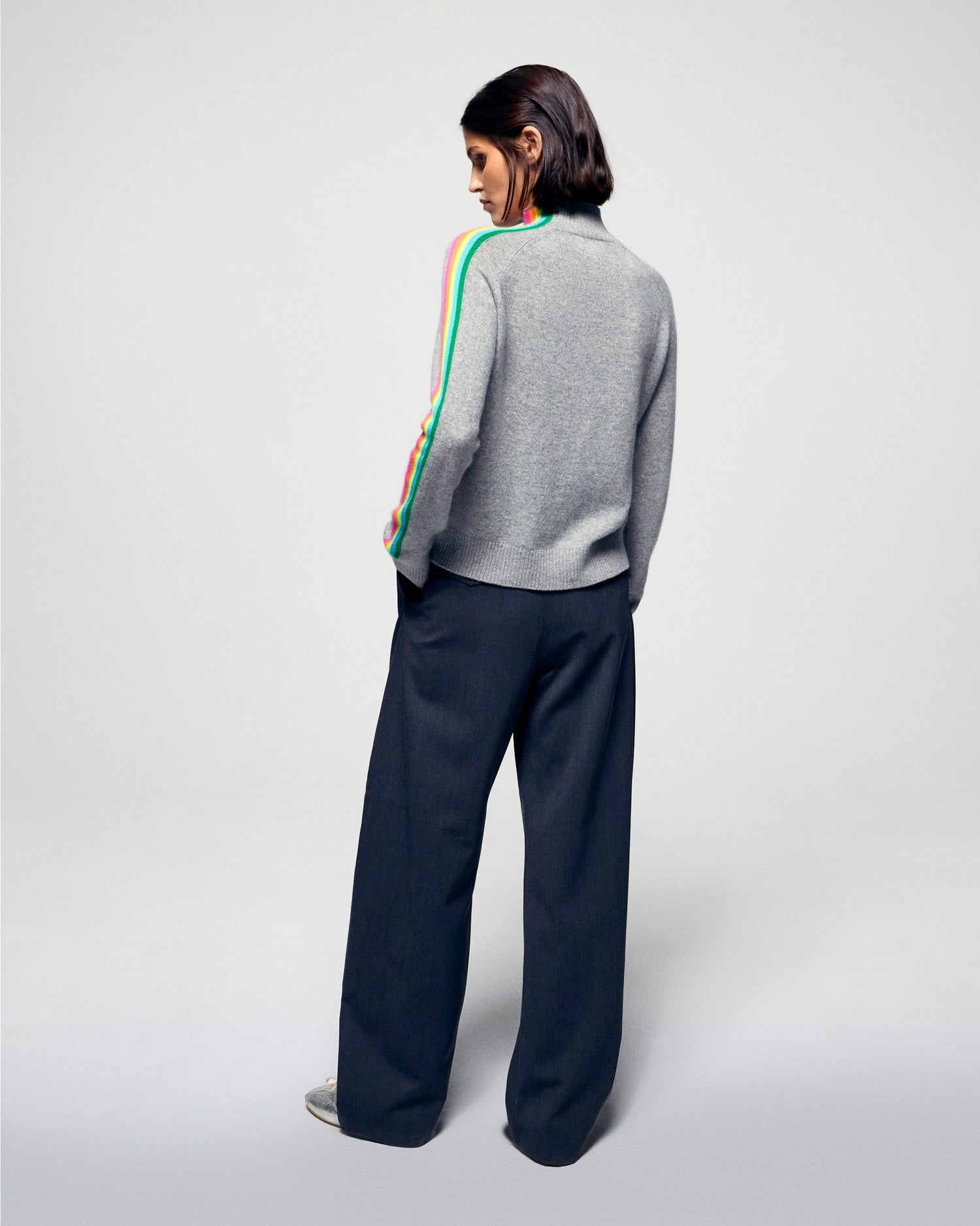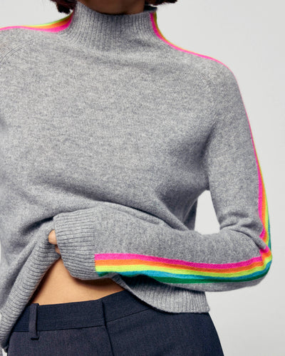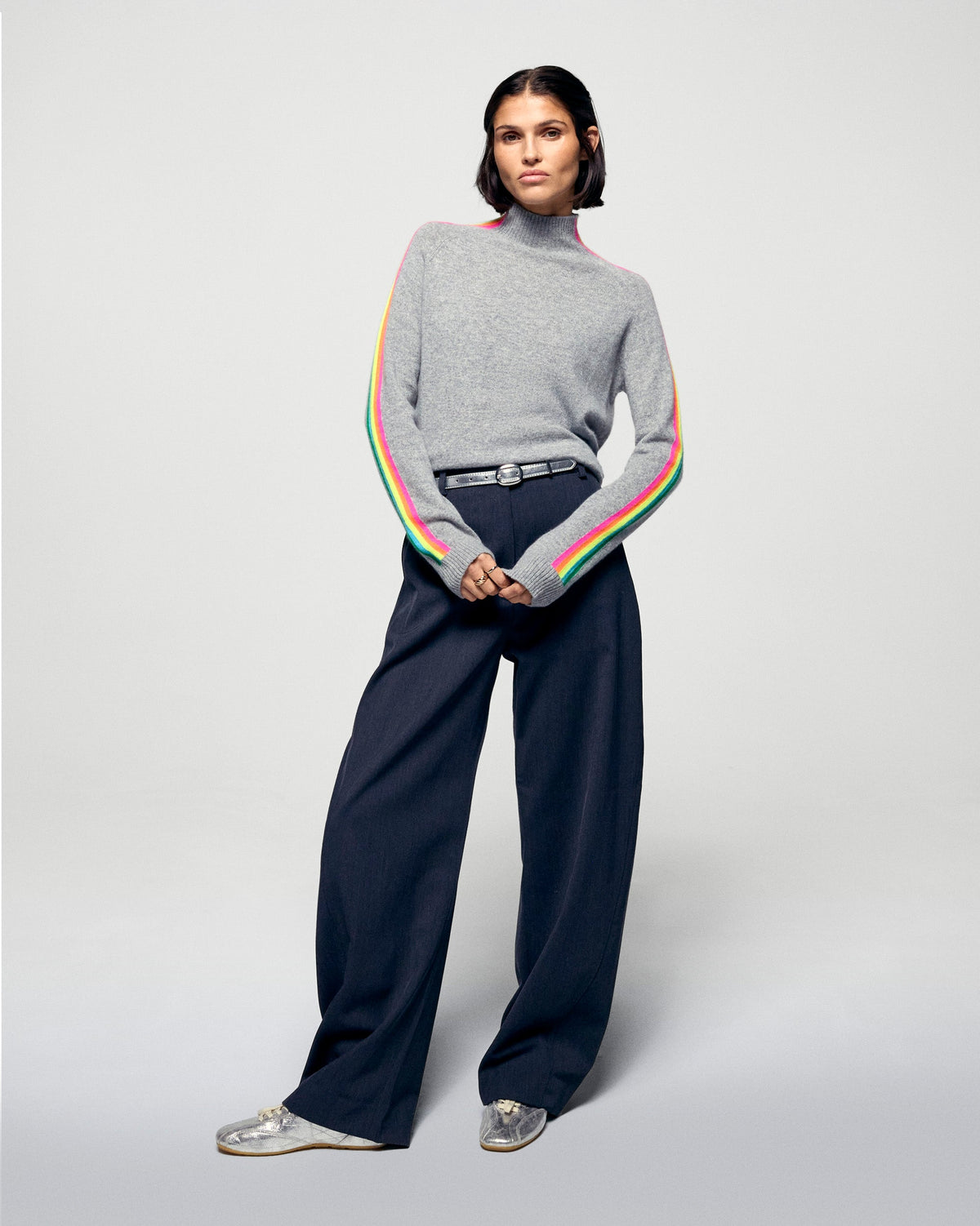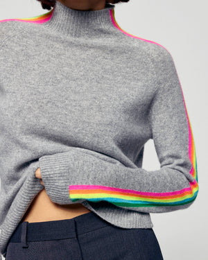 Morbidezza e leggerezza per questo Maglione Corto realizzato in cashmere. Dotato di un Collo a lupetto e bordi a coste, con strisce dai colori vivaci lungo le maniche. Ideale per strutturare in modo audace la vostra silhouette, abbinatela a jeans casual o a un abito da sera. Gonna fluido.