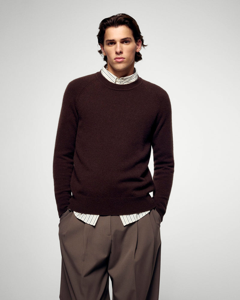 Un filato mouliné infinitamente morbido è il protagonista di questo maglione confezionato in cashmere. Il suo taglio oversize è sottolineato dallo scollo tondo, dalle maniche lunghe a raglan e dai bordi a coste. Elegante e senza tempo, da abbinare a jeans larghi o a pantaloni sartoriali strutturati.