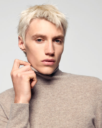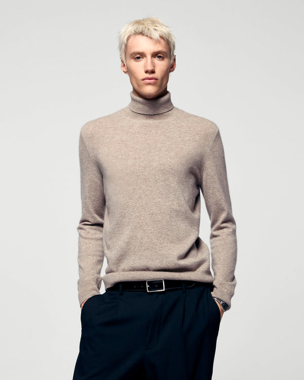 Sweater Maglione Collare Roulƒ - 100% Cashmere - Verificato GCS - Taupe