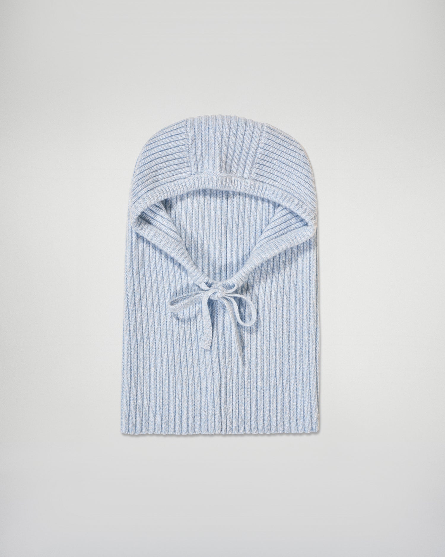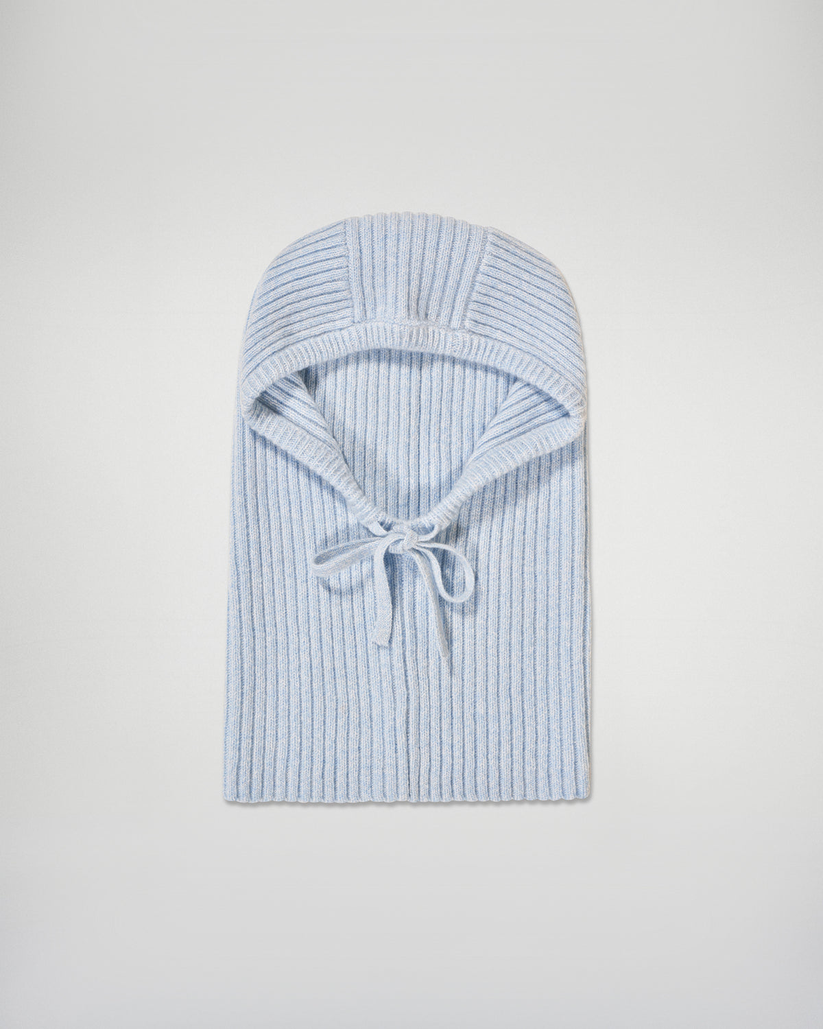 Avvolgiti di dolcezza con questo passamontagna a coste realizzato in Cashmere. Dotato di lacci regolabili per una vestibilità perfetta, riscalda la tua silhouette aggiungendo un tocco di eleganza ai tuoi look di stagione.