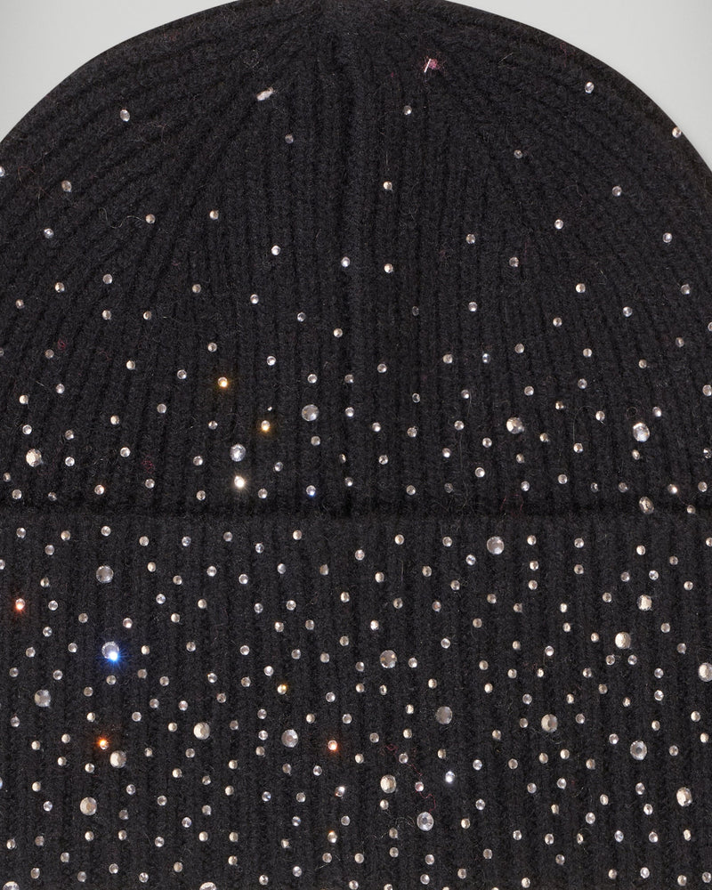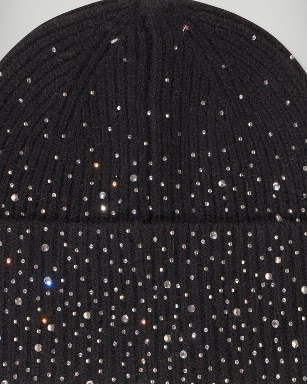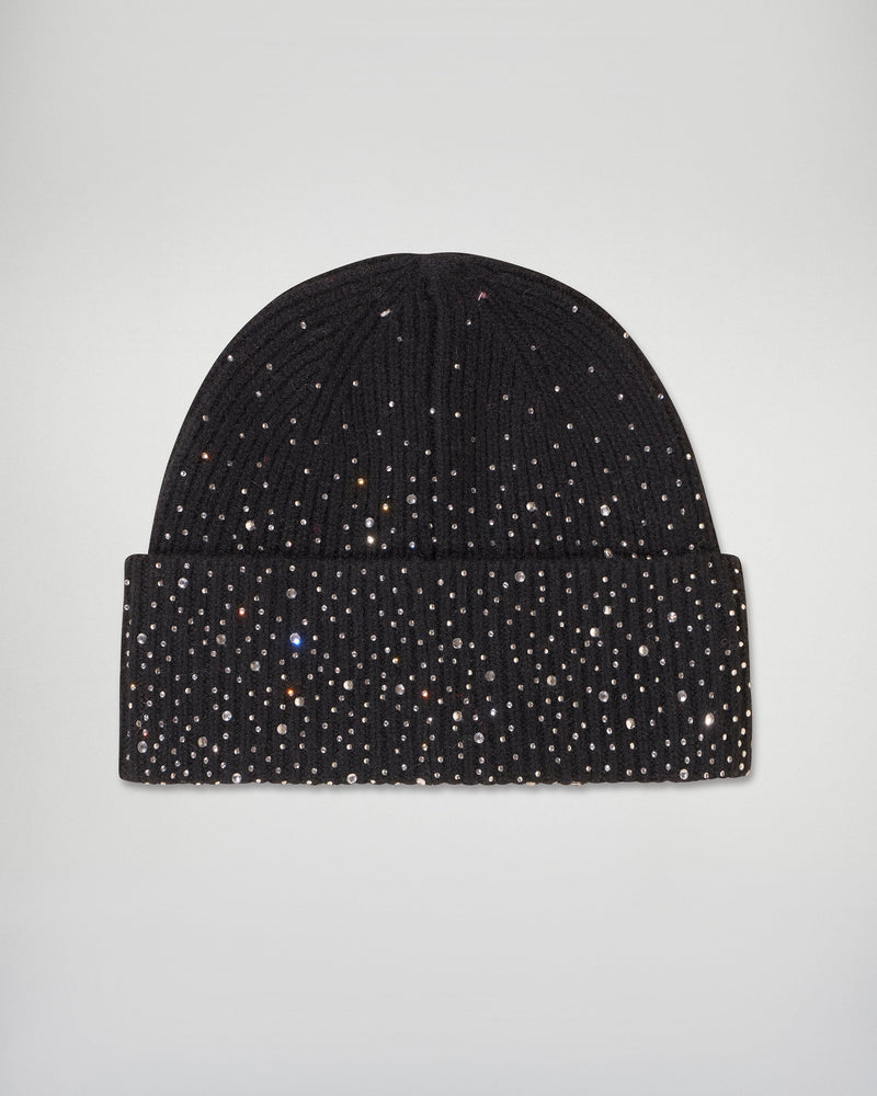 - Berretto con strass in cashmere a coste 6 fili certificato GCS® Donna