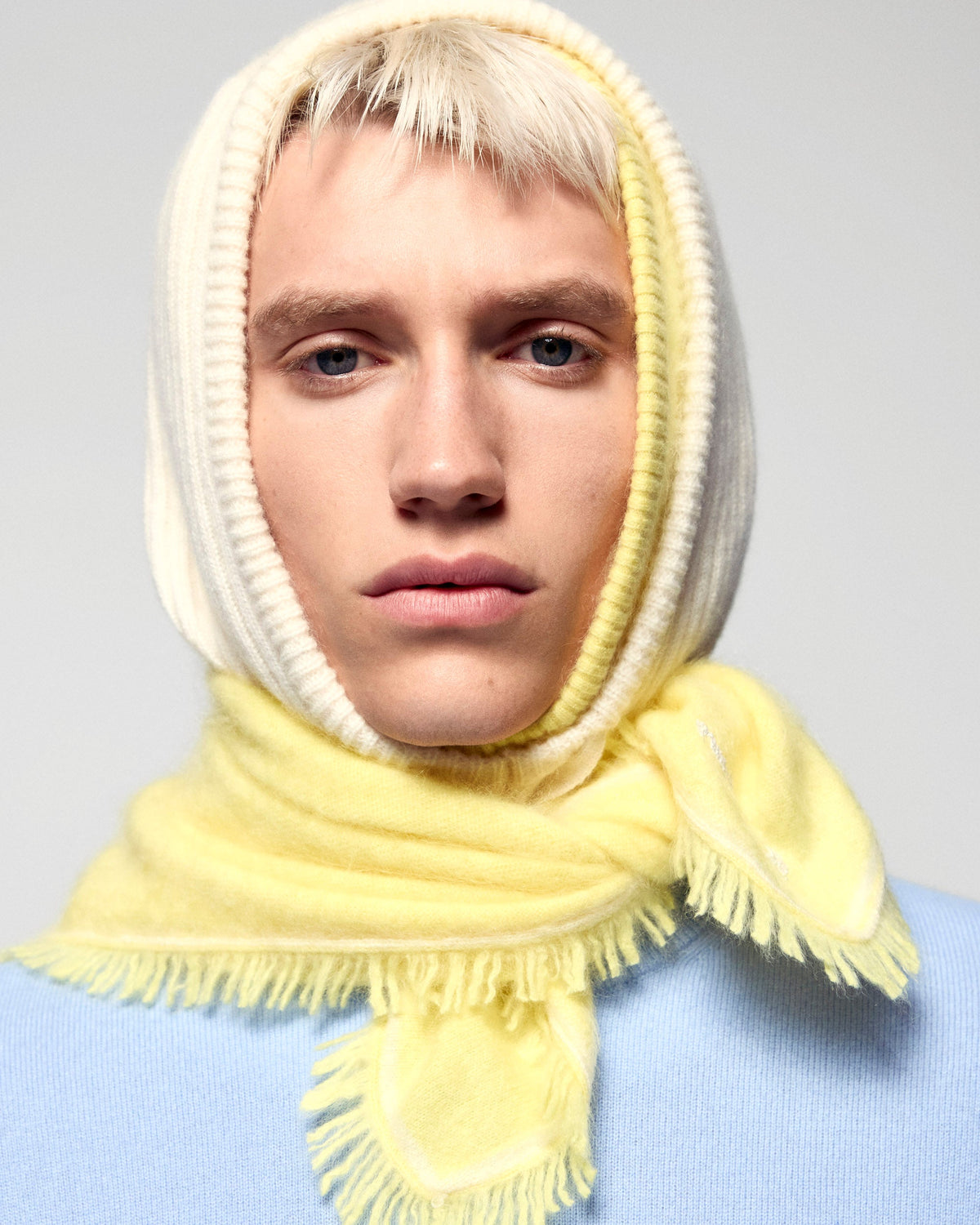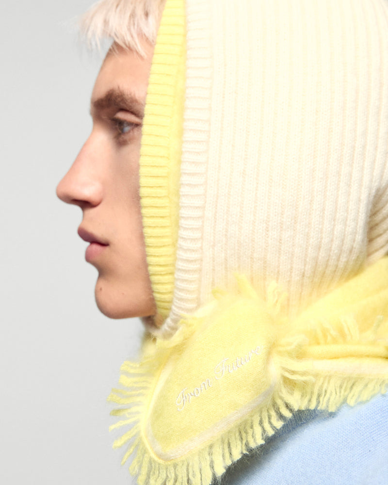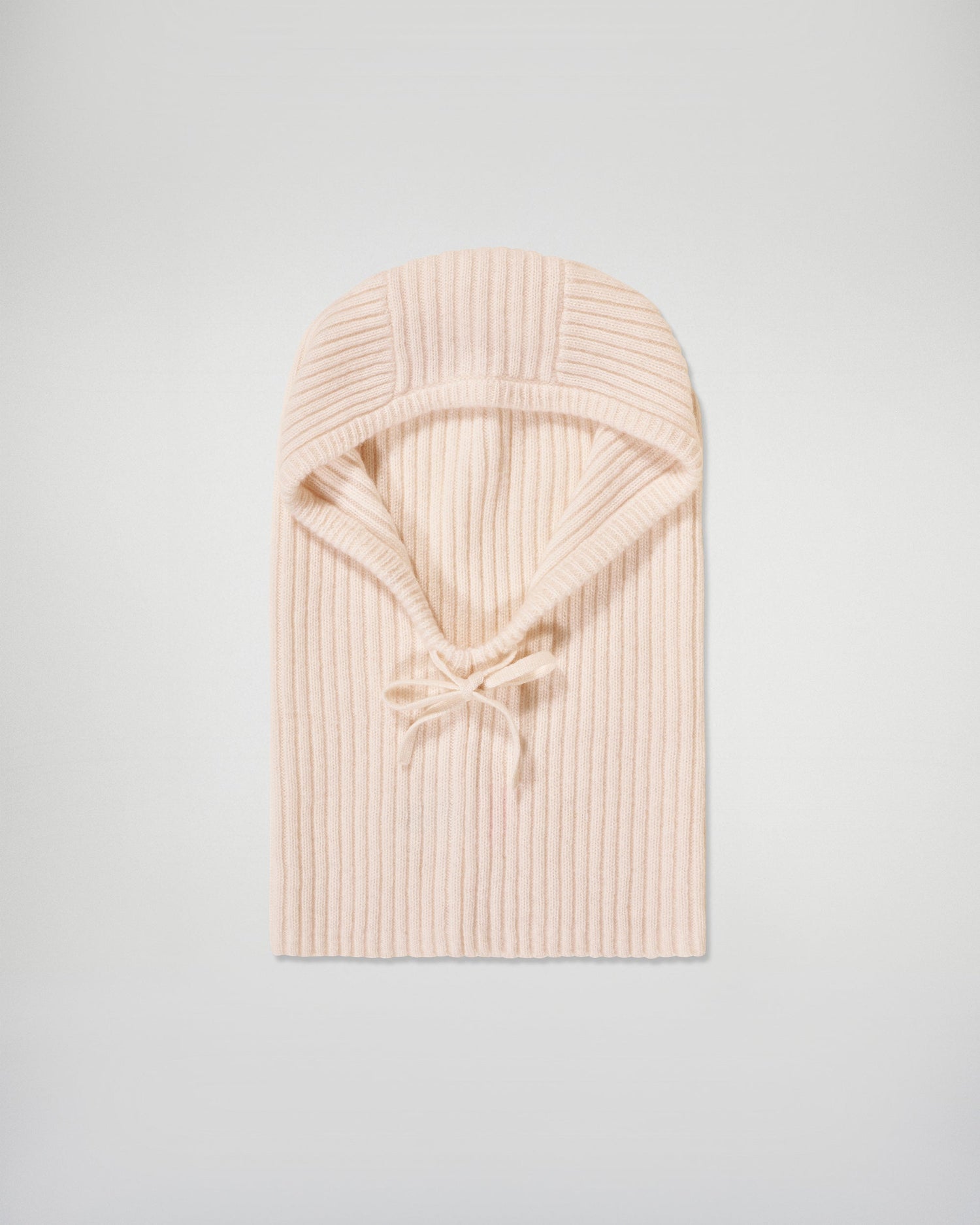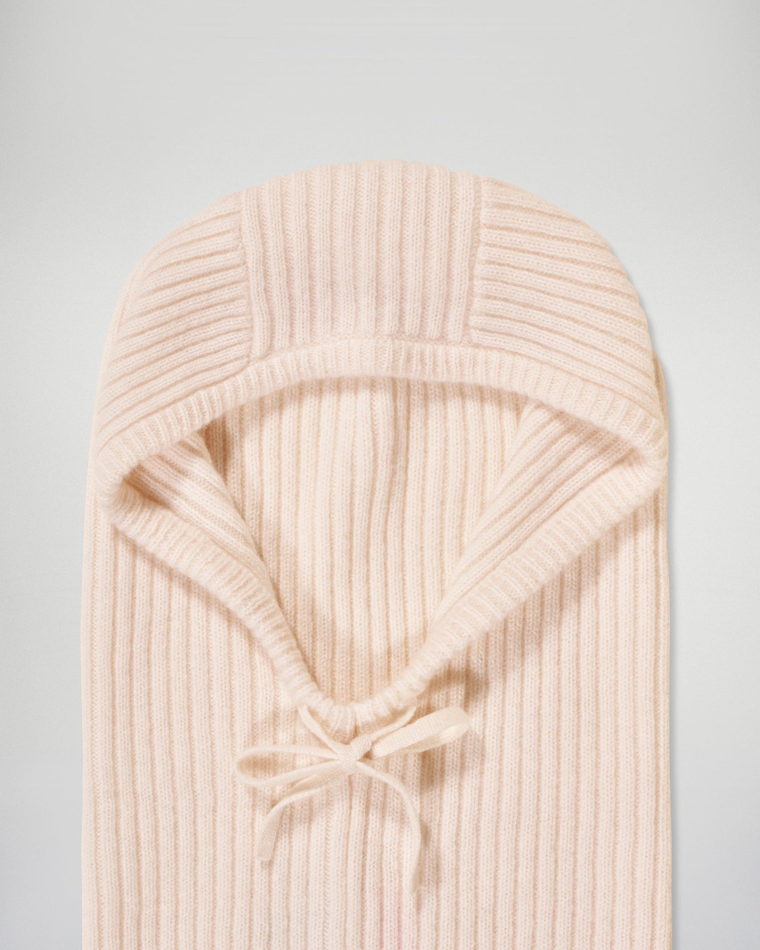 Avvolgiti di dolcezza con questo passamontagna a coste realizzato in Cashmere. Dotato di lacci regolabili per una vestibilità perfetta, riscalda la tua silhouette aggiungendo un tocco di eleganza ai tuoi look di stagione.
