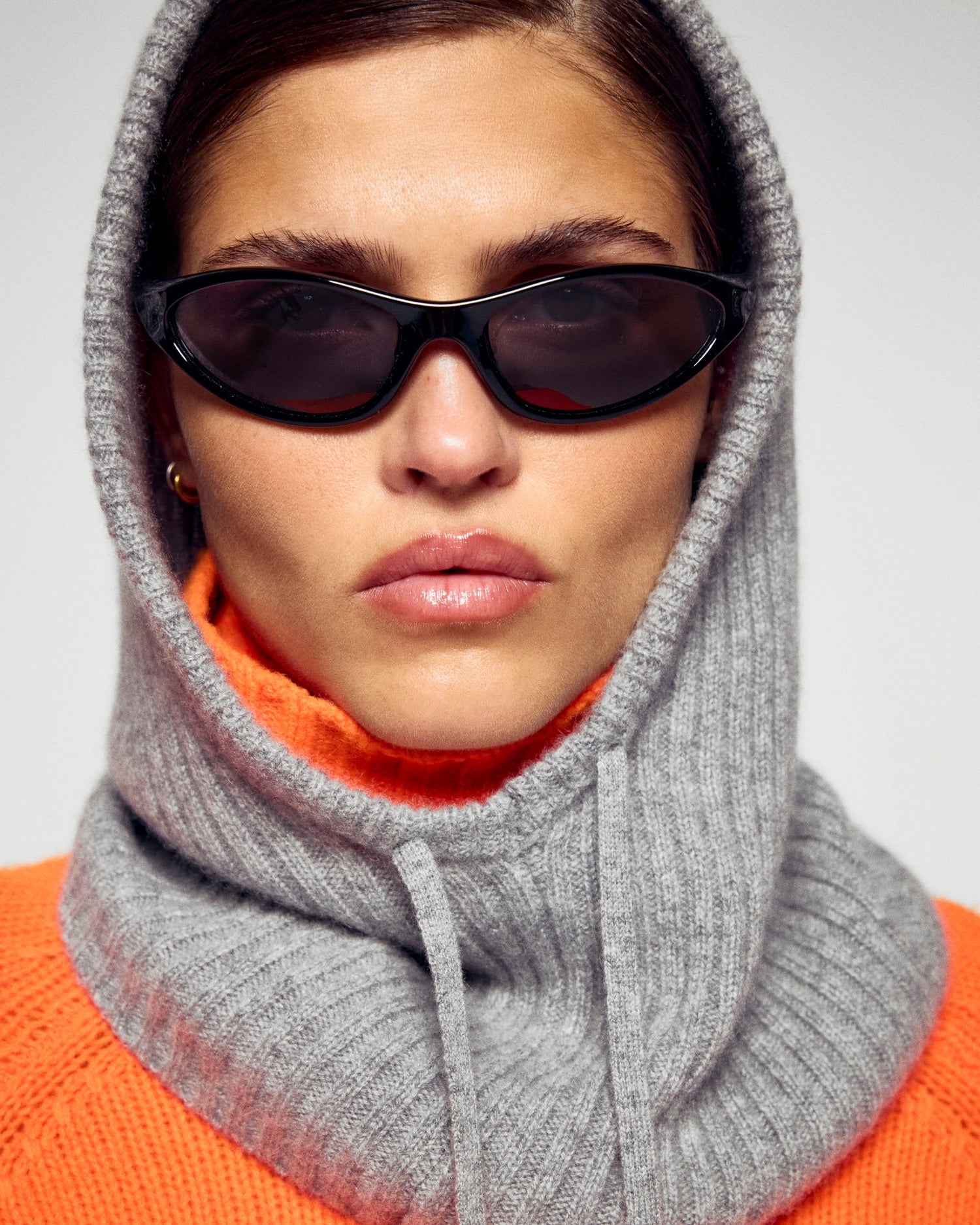 Avvolgiti di dolcezza con questo passamontagna a coste realizzato in Cashmere. Dotato di lacci regolabili per una vestibilità perfetta, riscalda la tua silhouette aggiungendo un tocco di eleganza ai tuoi look di stagione.
