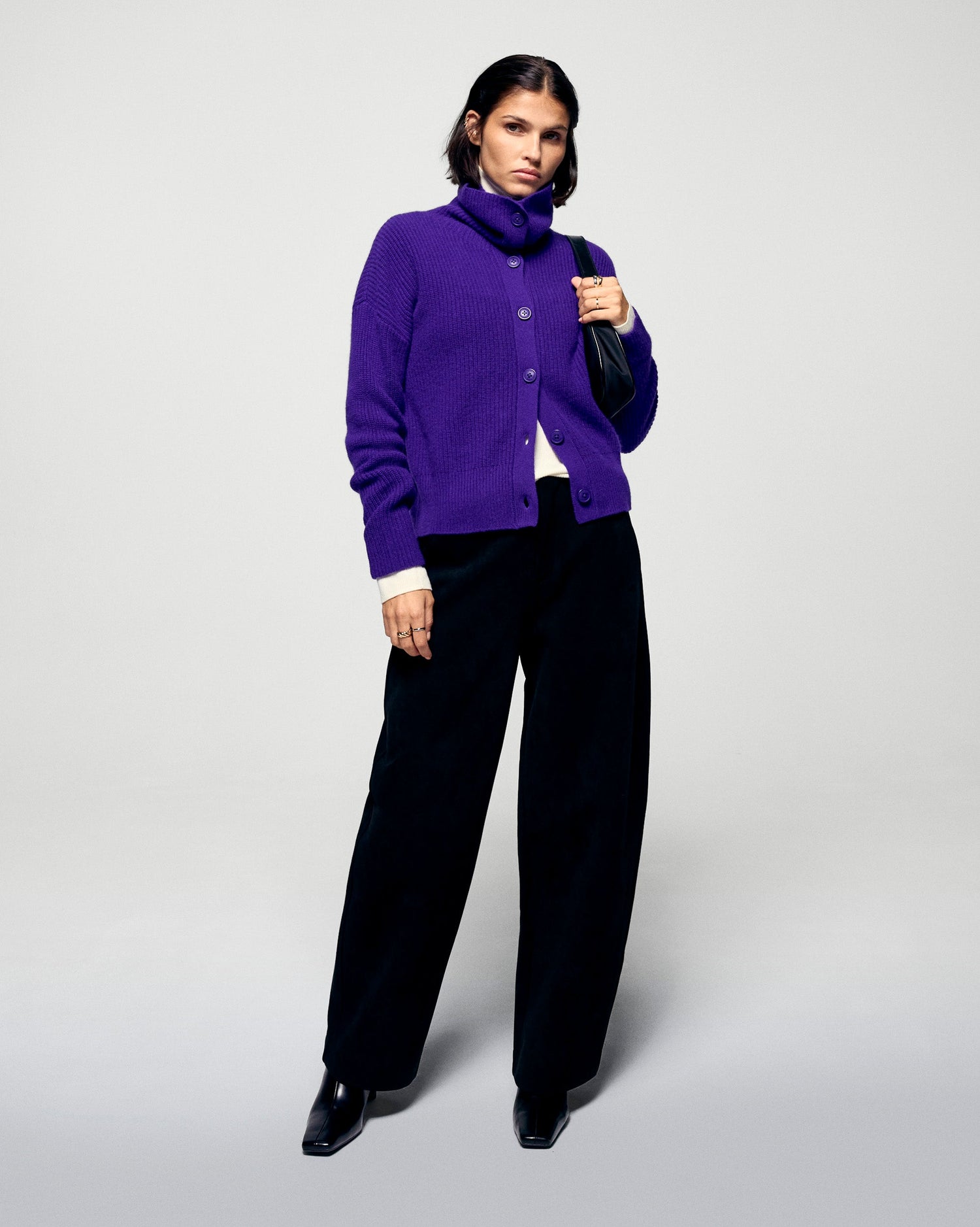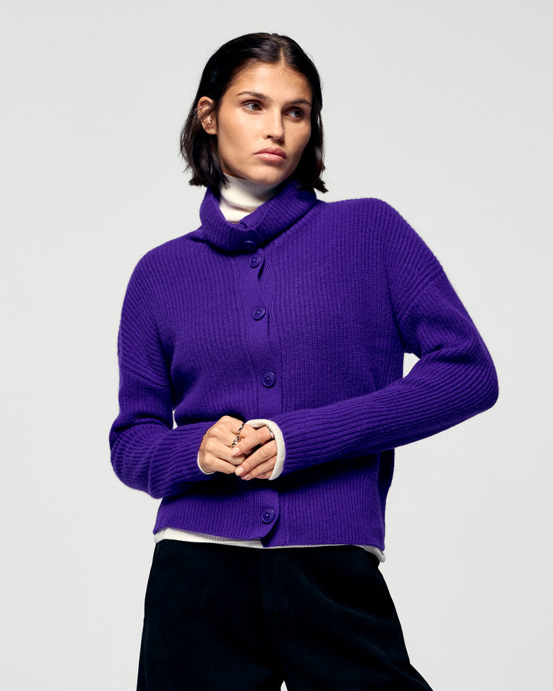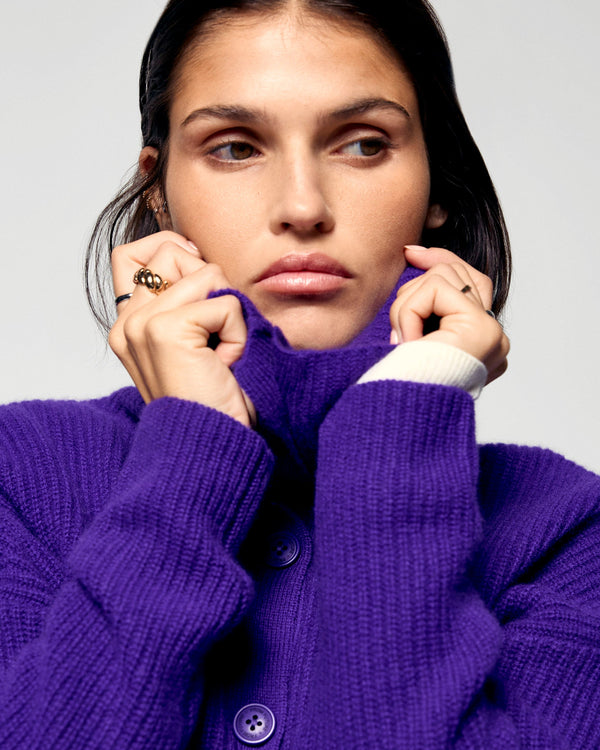Questo cardigan in cashmere, con maniche lunghe e bordi a coste, ti avvolgerà di morbidezza in questa stagione. La chiusura con bottoni consente di regolare il colletto in base al proprio umore: aperto per un look casual o alto per uno stile più deciso.