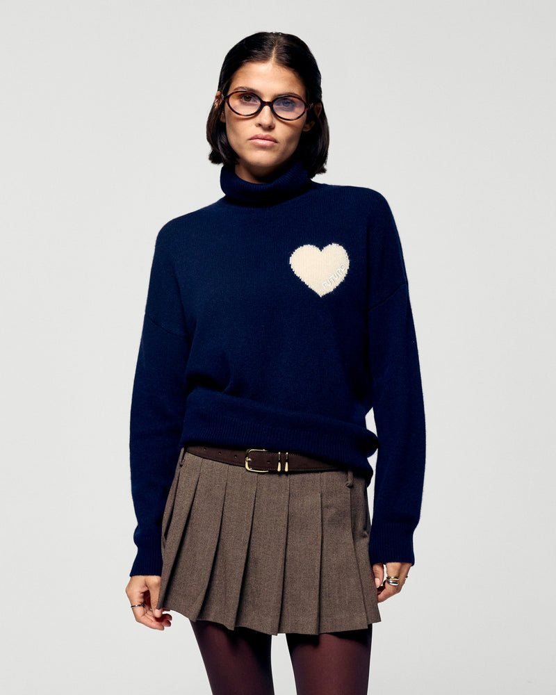 Illuminato dal colore protagonista della stagione, questo maglione in cashmere presenta un cuore e bande a contrasto. Vivacizzato da un collo a dolcevita e maniche lunghe, riscalderà il tuo look con audacia. Indossalo con un paio di pantaloni morbidi e delle sneakers per uno stile chic e casual!