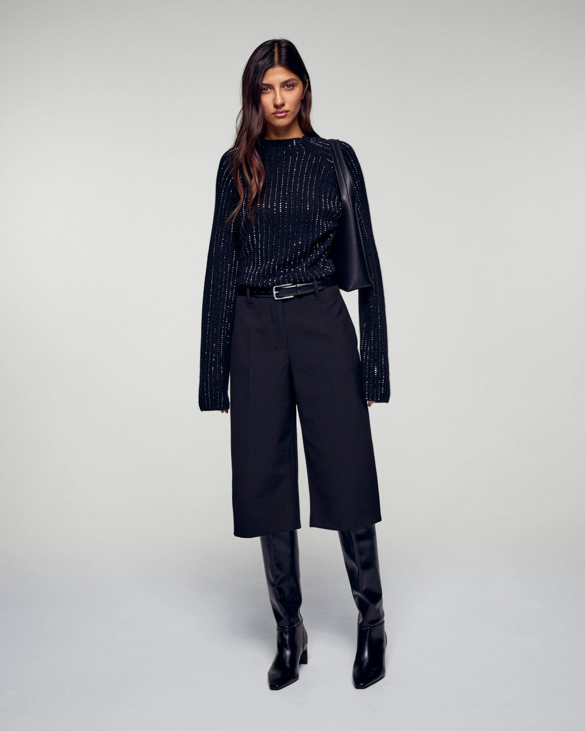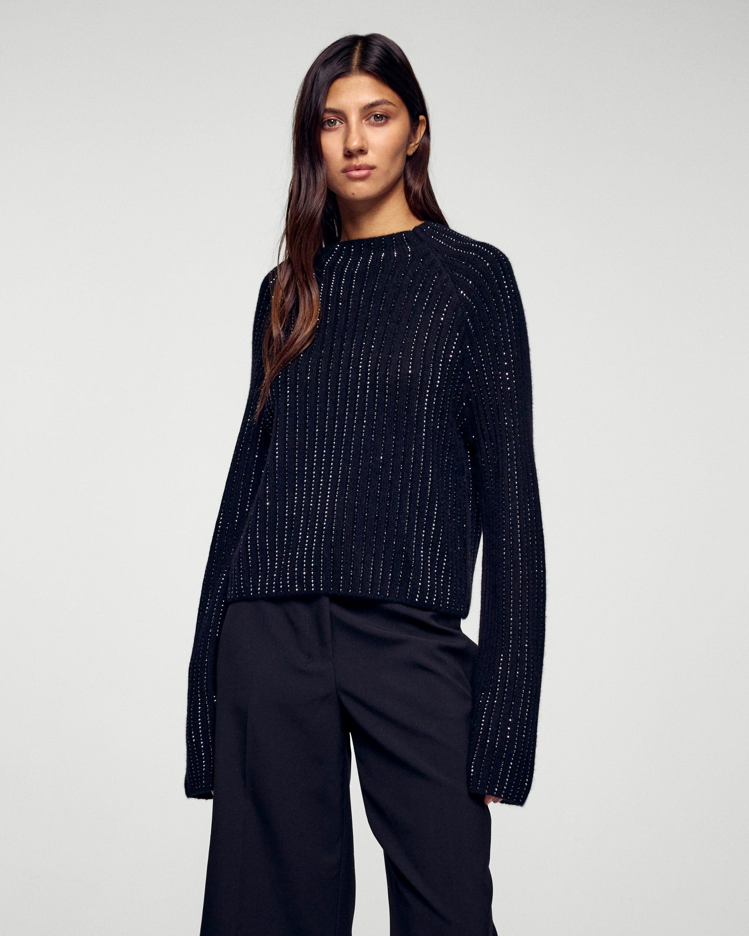 - Maglione con strass in cashmere a coste 4 fili certificato GCS® Donna