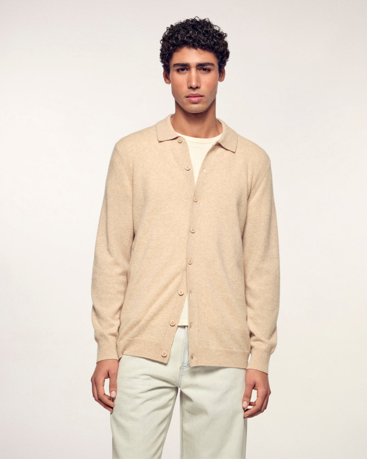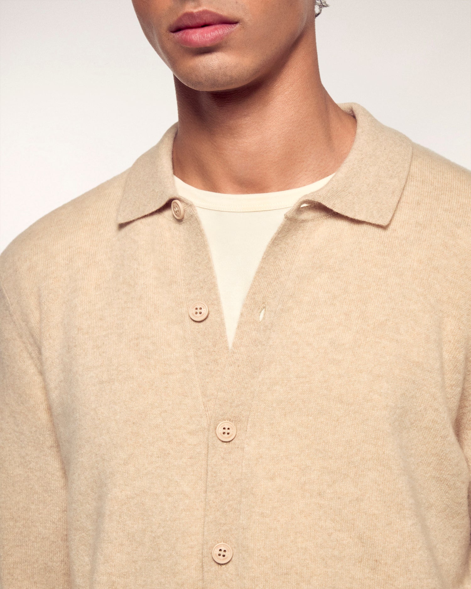 Un capo essenziale del guardaroba maschile che unisce la raffinatezza di una camicia alla morbidezza incomparabile del cashmere. Questo modello a maniche lunghe si distingue per il collo classico e la maglia delicata, offrendo un'allure al tempo stesso casual e sofisticata, ideale per un'eleganza quotidiana.
