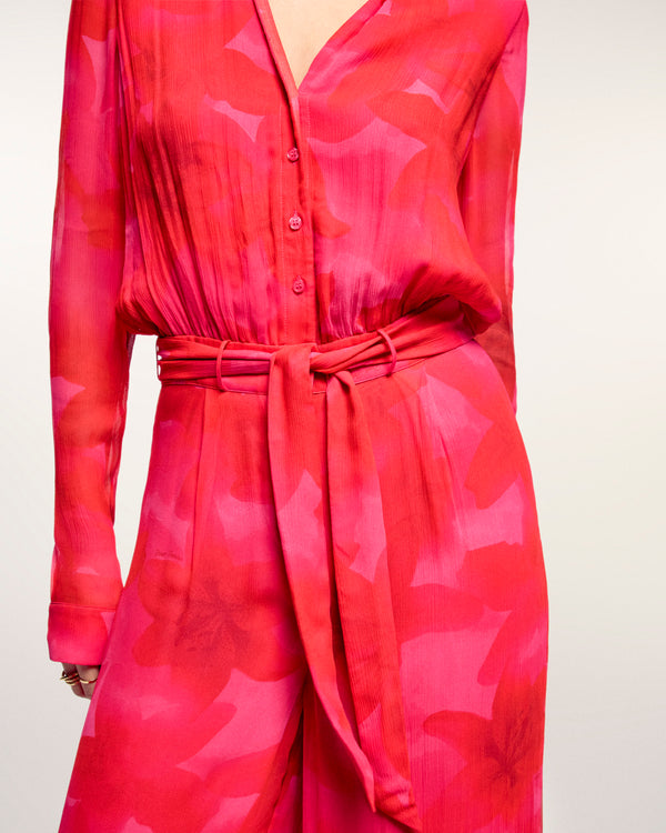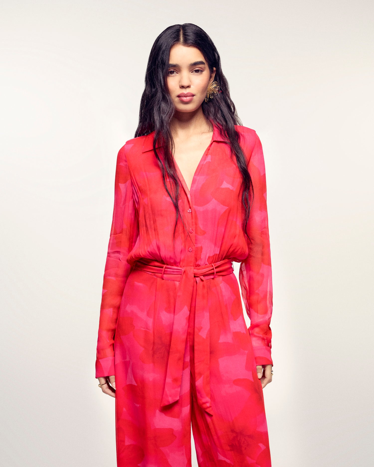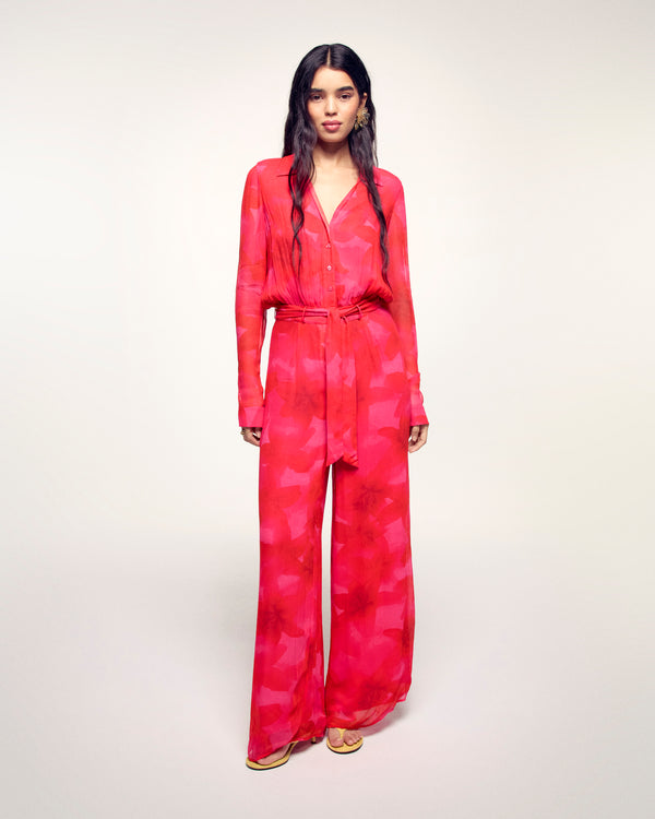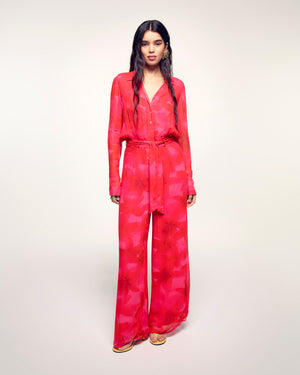 Il pezzo forte della tua estate. Realizzata in Mousseline di Viscosa, questa tuta lunga e fluida offre un comfort assoluto. La sua cintura da annodare in vita disegna una silhouette elegante e rilassata.