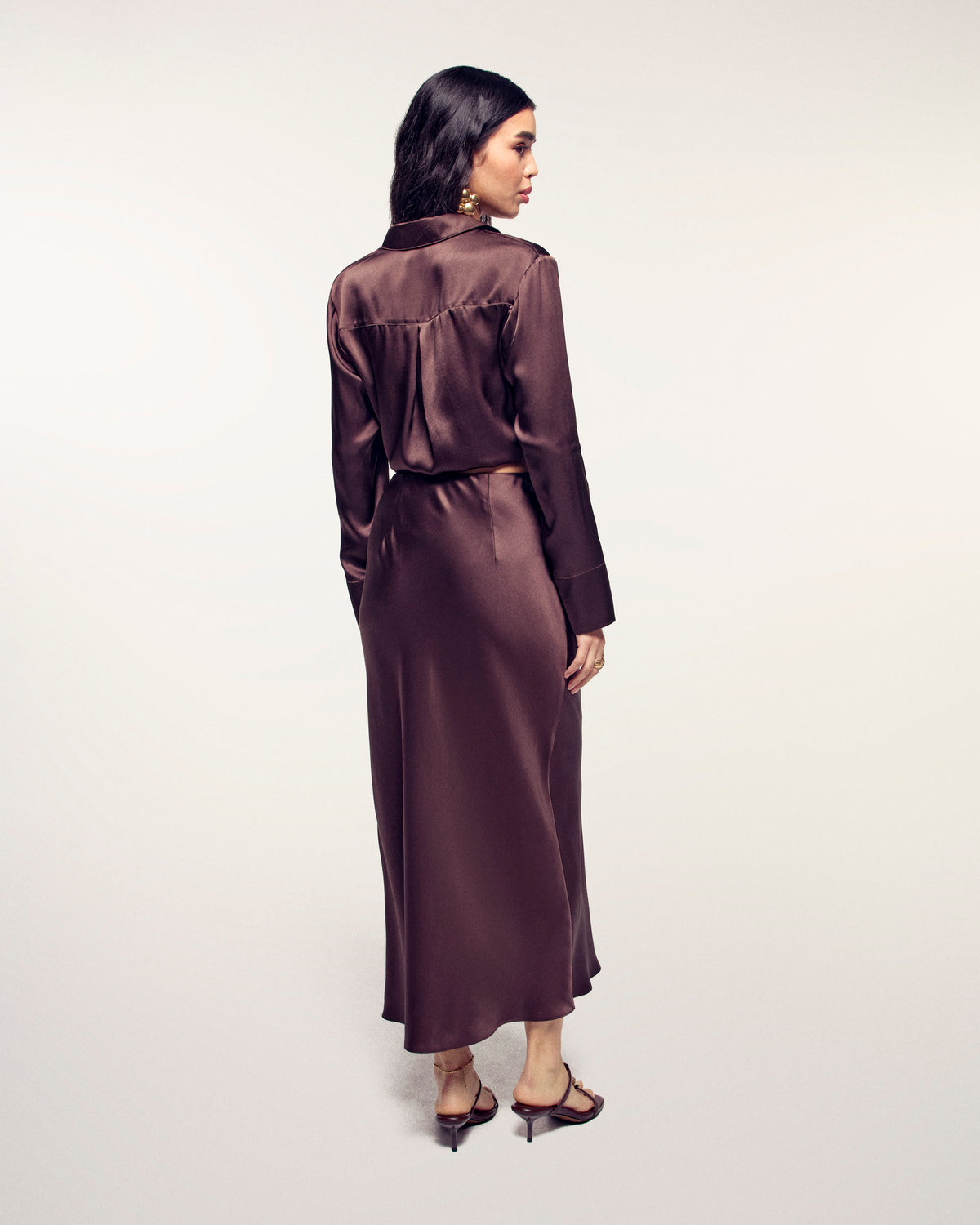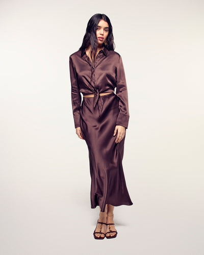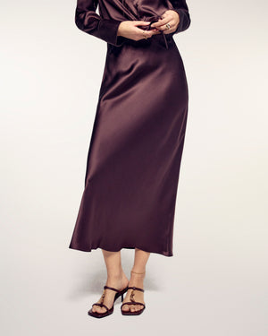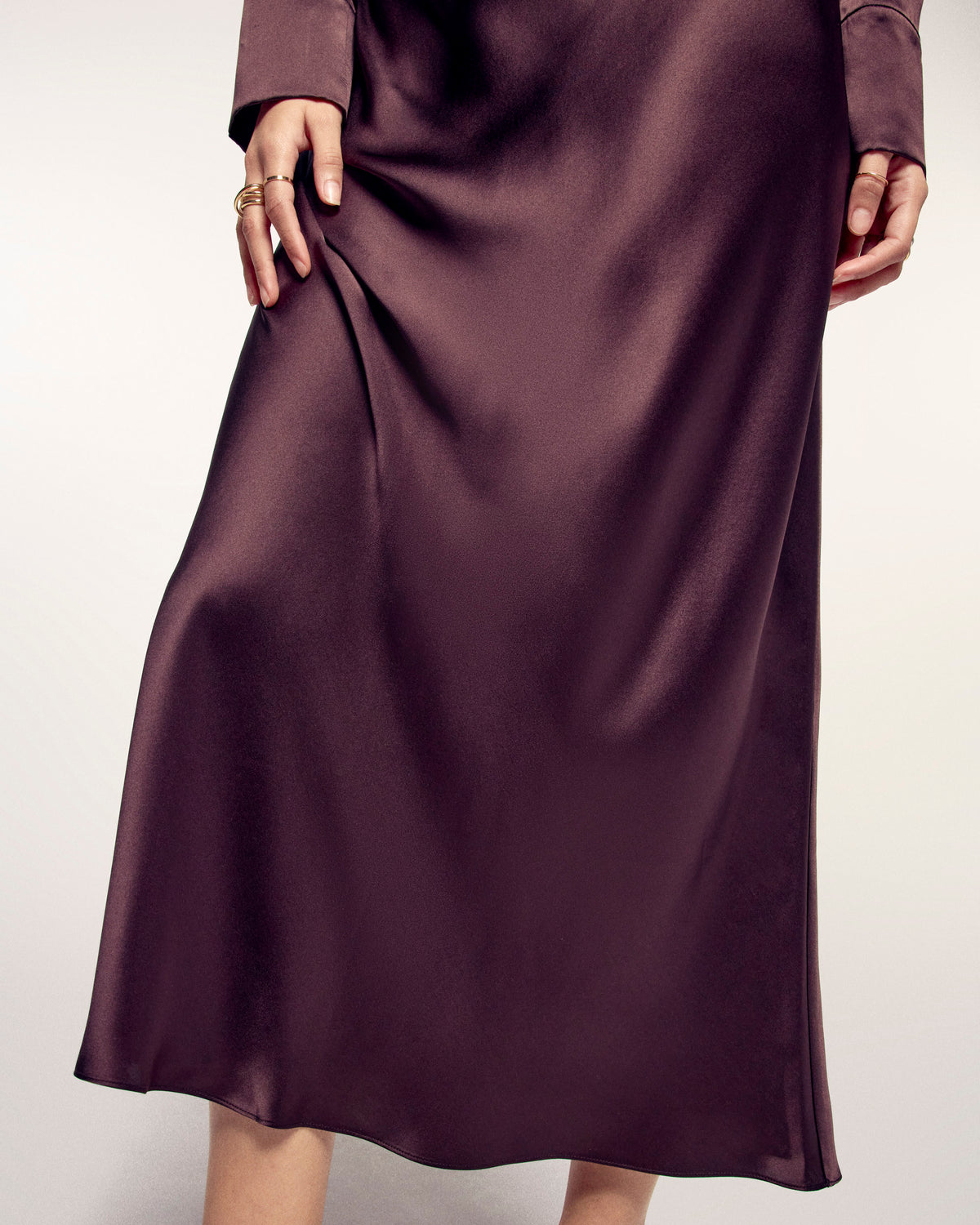 Realizzata in raso di seta lucido e leggero, la gonna midi Vicky dona un grande fascino. Estremamente elegante, rivela una vestibilità fluida e svasata. Ideale in ogni circostanza, si abbina perfettamente a un top strutturato o a una camicia satinata.