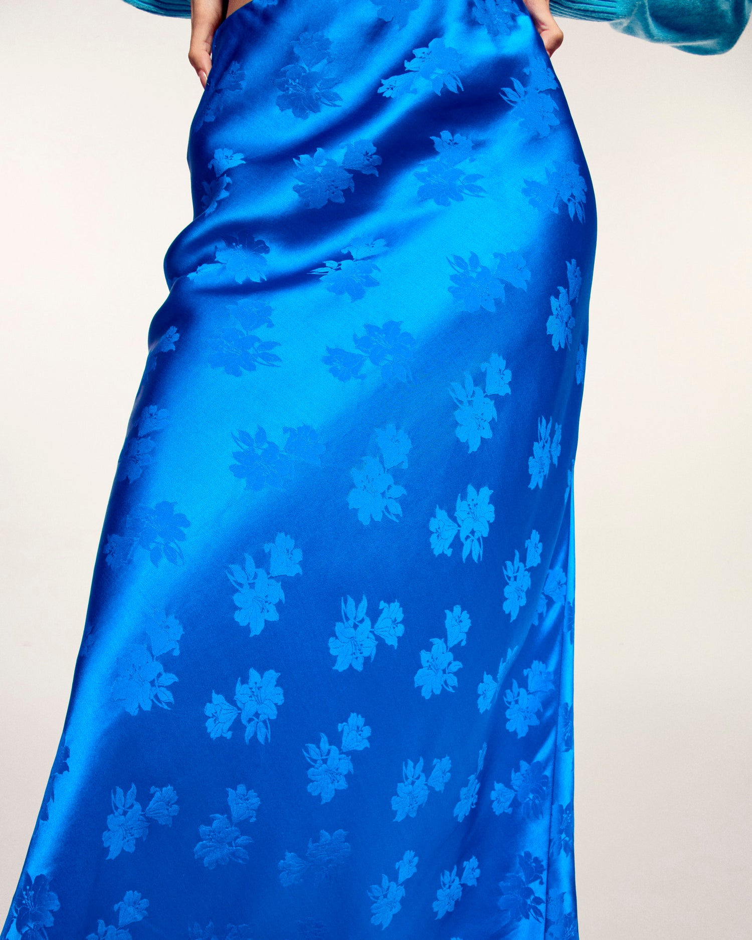 Realizzata in raso di seta lucido e leggero, la gonna midi Vicky conferisce grande fascino. Con estrema eleganza, rivela un cascante fluido e svasato. Ideale in ogni circostanza, si abbina a un top strutturato o a una camicia satinata.