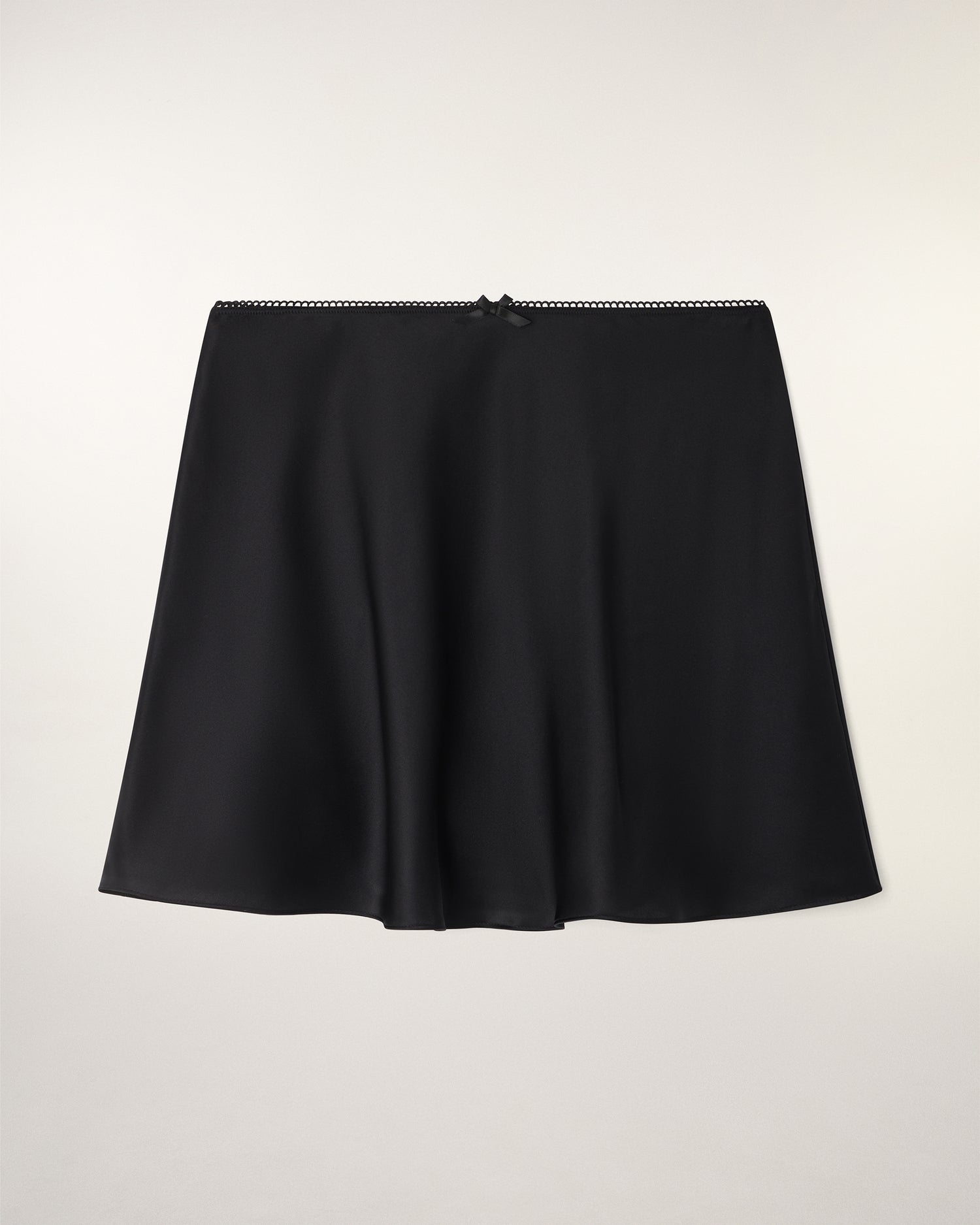 Una silhouette leggera e solare per questa minigonna realizzata in raso di seta. Si distingue per il delicato dettaglio del nodo in vita nel centro davanti, offrendo un'allure al tempo stesso fresca e sofisticata per le vostre giornate estive.