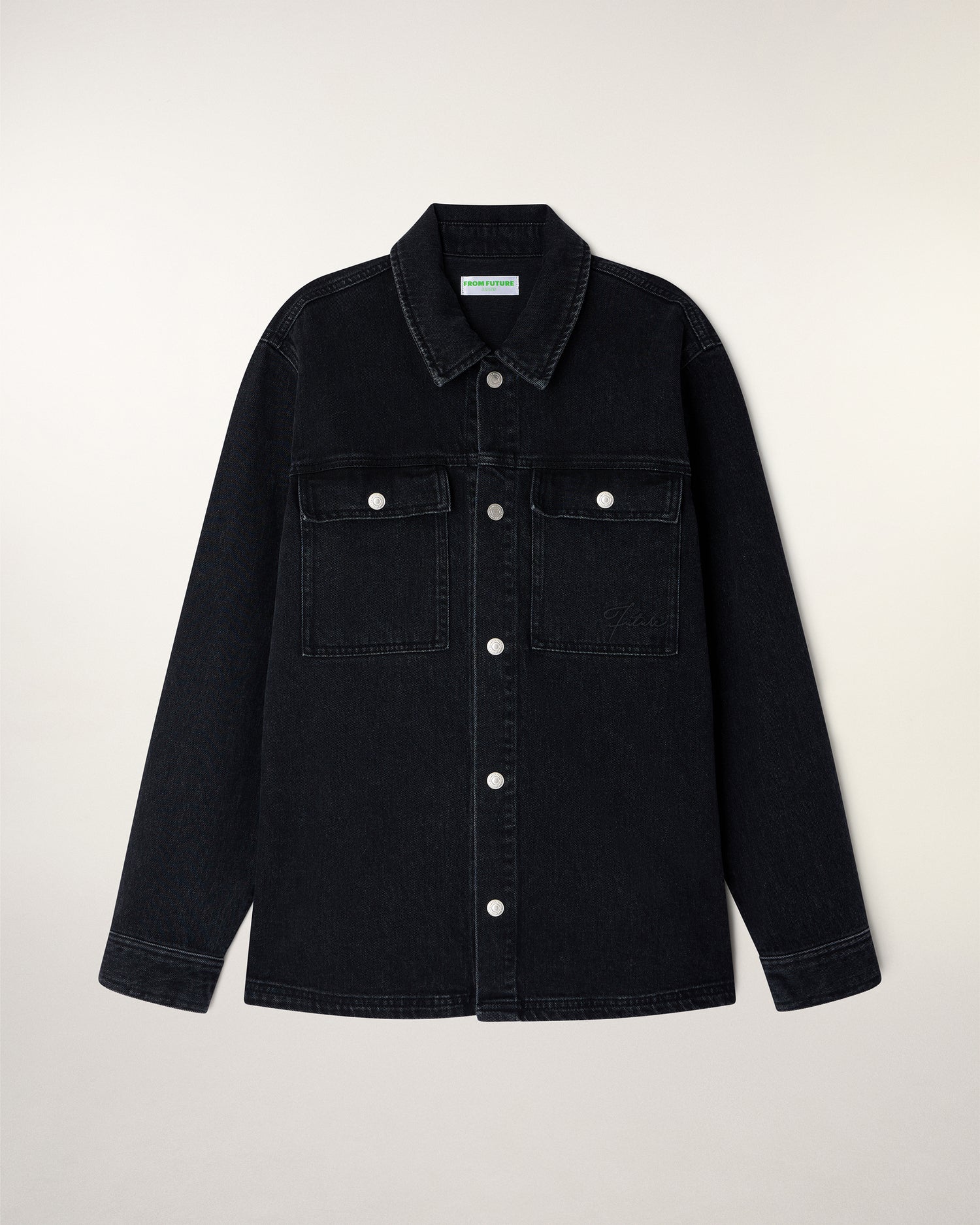 Il capo ideale per la mezza stagione. Realizzata in cotone, questa sovracamicia dona un tocco workwear chic con il suo effetto Washed Black e il taglio strutturato. È rifinita dal ricamo "Future" e da bottoni automatici argentati per uno stile audace.