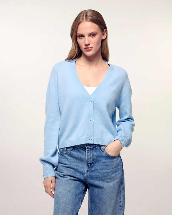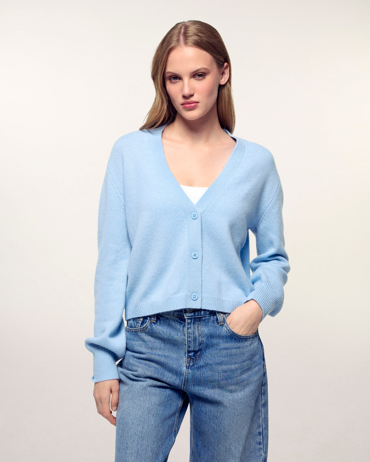 Un essenziale del guardaroba, questo maglione cardigan corto in cashmere unisce morbidezza e modernità. La sua maglia a 4 fili offre un calore ideale pur rimanendo leggera. Dotato di un elegante scollo a V e di un taglio oversize, dona un look rilassato e raffinato a tutti i tuoi outfit.