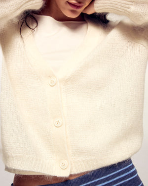 Un capo vaporoso e colorato che dona un tocco di morbidezza e modernità alla vostra silhouette. Questo maglione cardigan si distingue per il suo aspetto soffice e la sua maglia leggera, ideale per riscaldare i vostri outfit di stagione con stile.