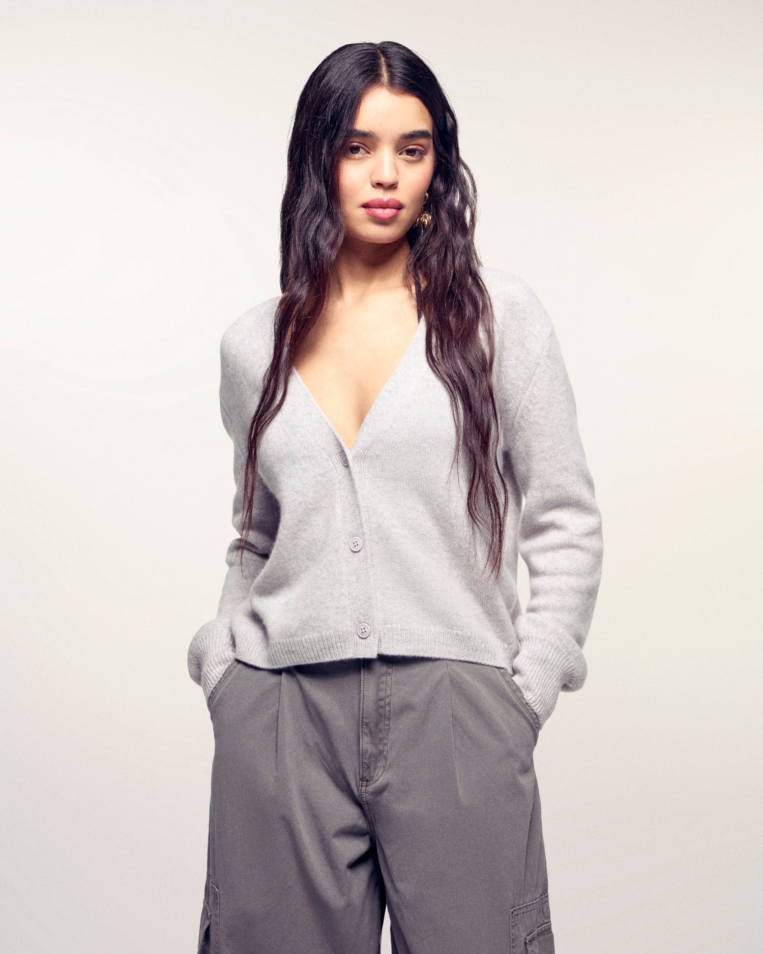 Maglione Cardigan - 100% Cashmere - Verificato GCS - Grigio erica chiaro