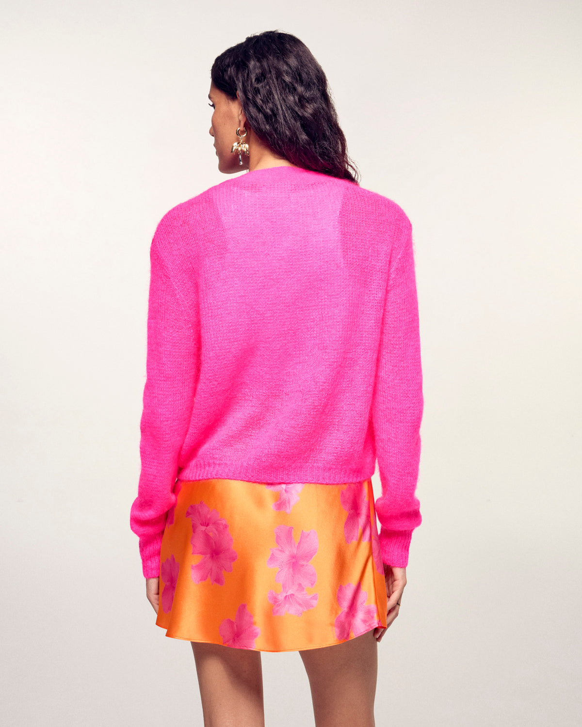Un capo vaporoso e colorato che dona un tocco di morbidezza e modernità alla vostra silhouette. Questo maglione cardigan si distingue per il suo aspetto soffice e la sua maglia leggera, ideale per riscaldare i vostri outfit di stagione con stile.