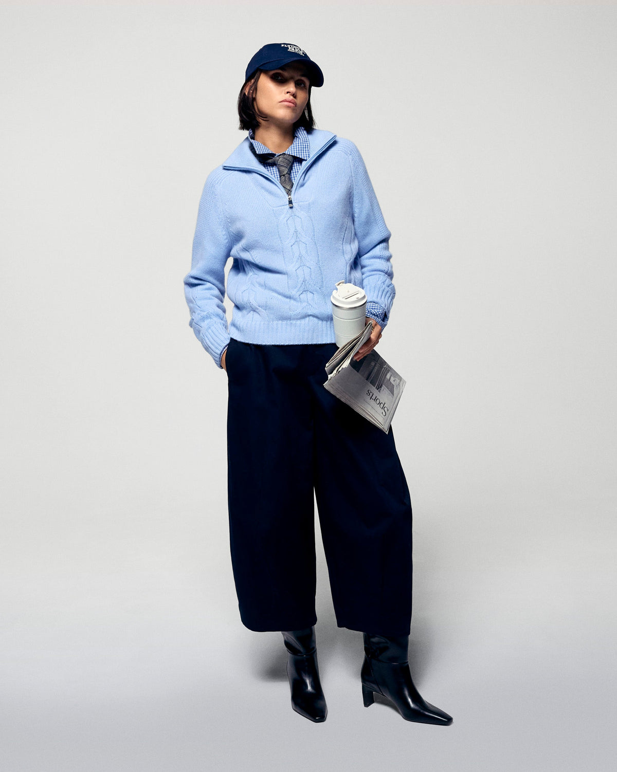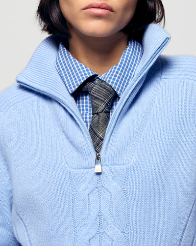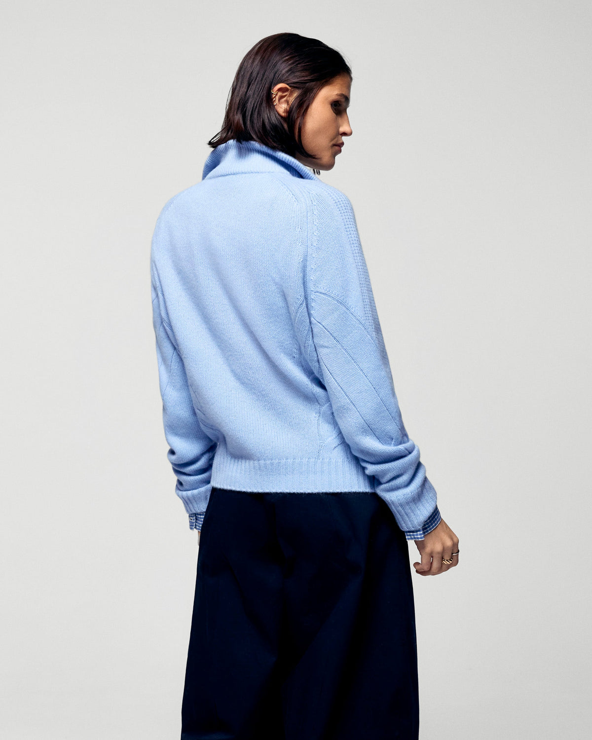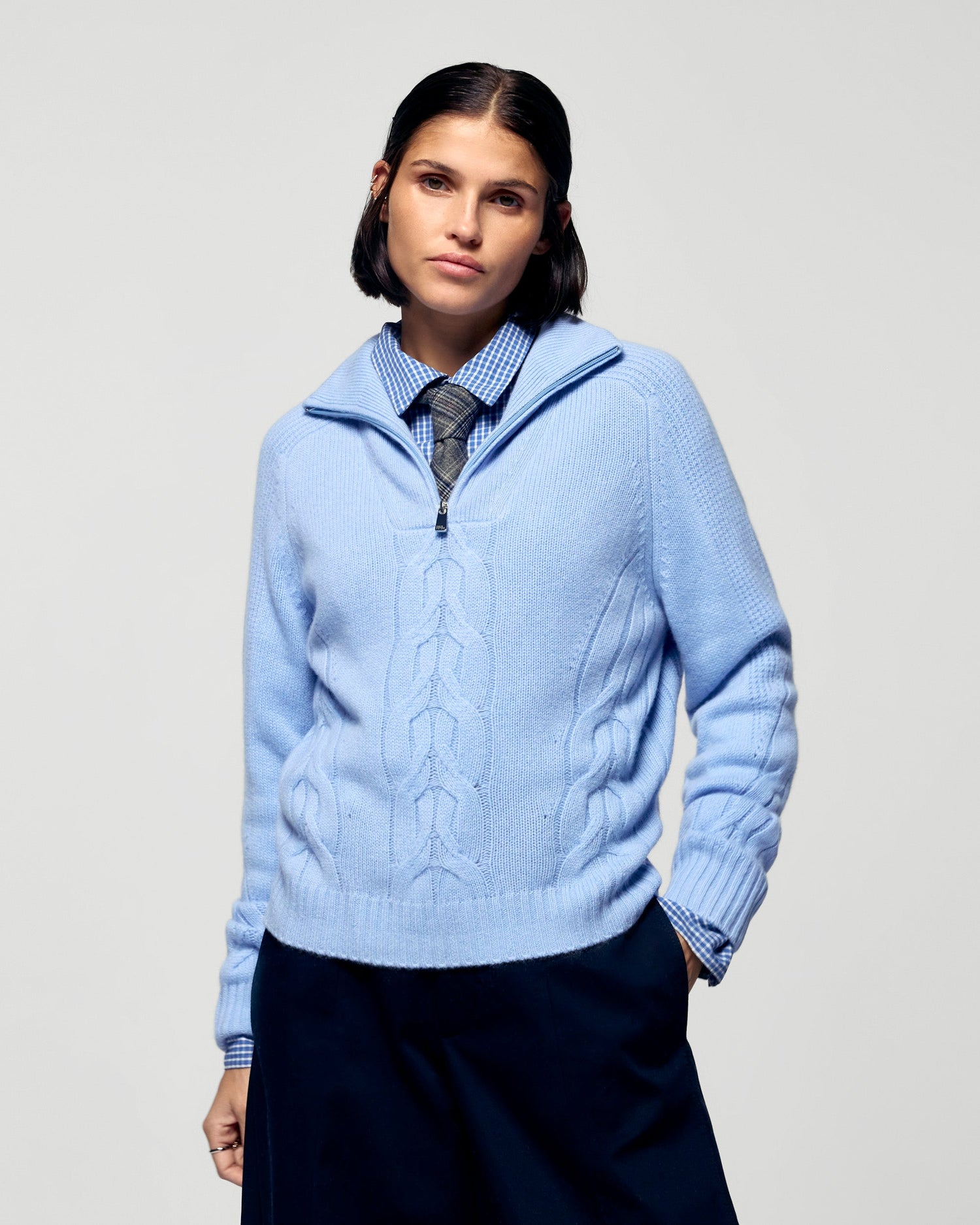 Sweater Maglione Collo alto con zip - 100% Cashmere - Verificato GCS - Smooth Blue