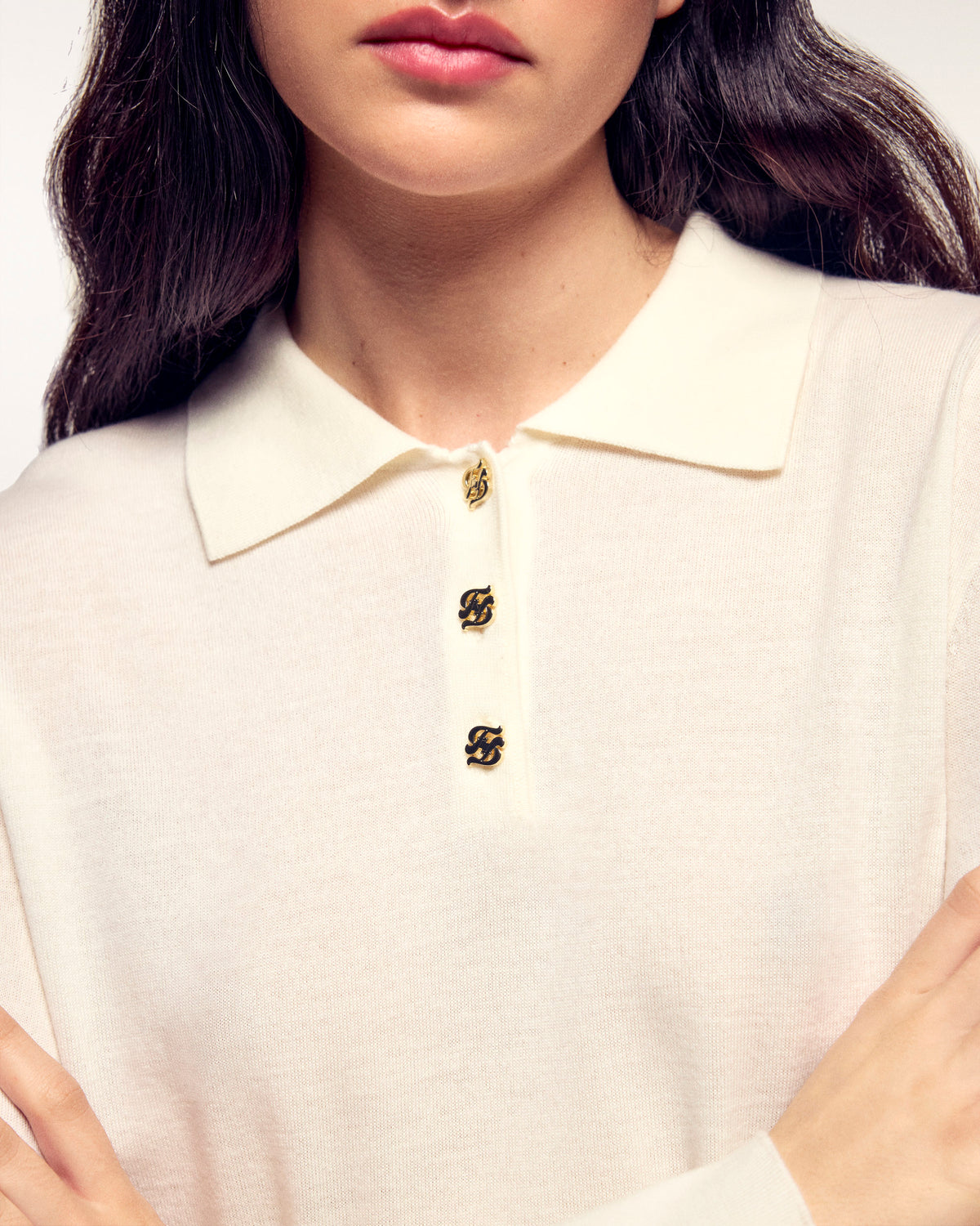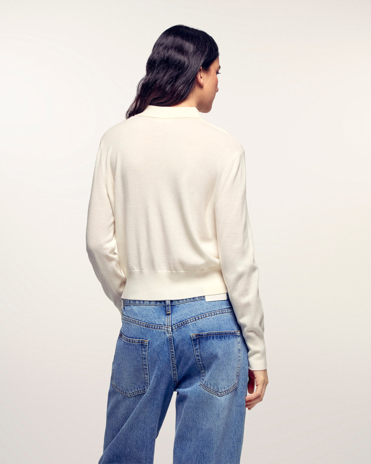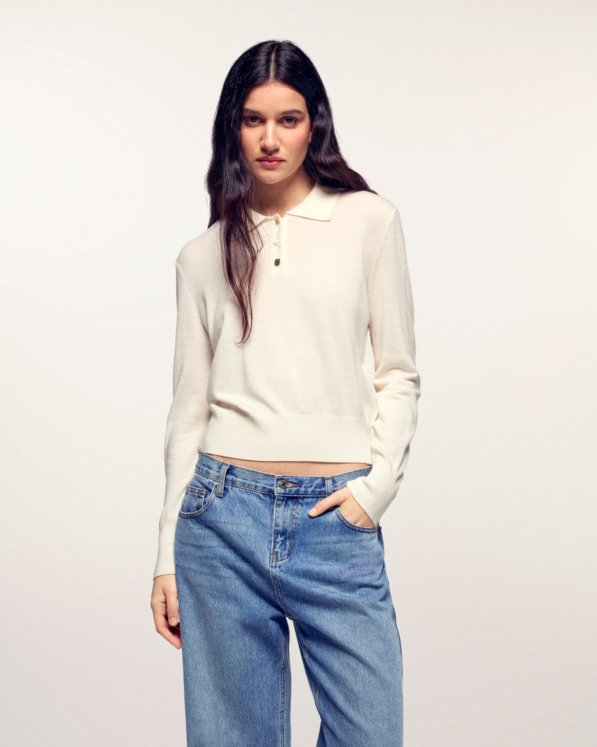 - Maglione a collo polo in 100% lana merino certificata RWS (Responsible Wool Standard)