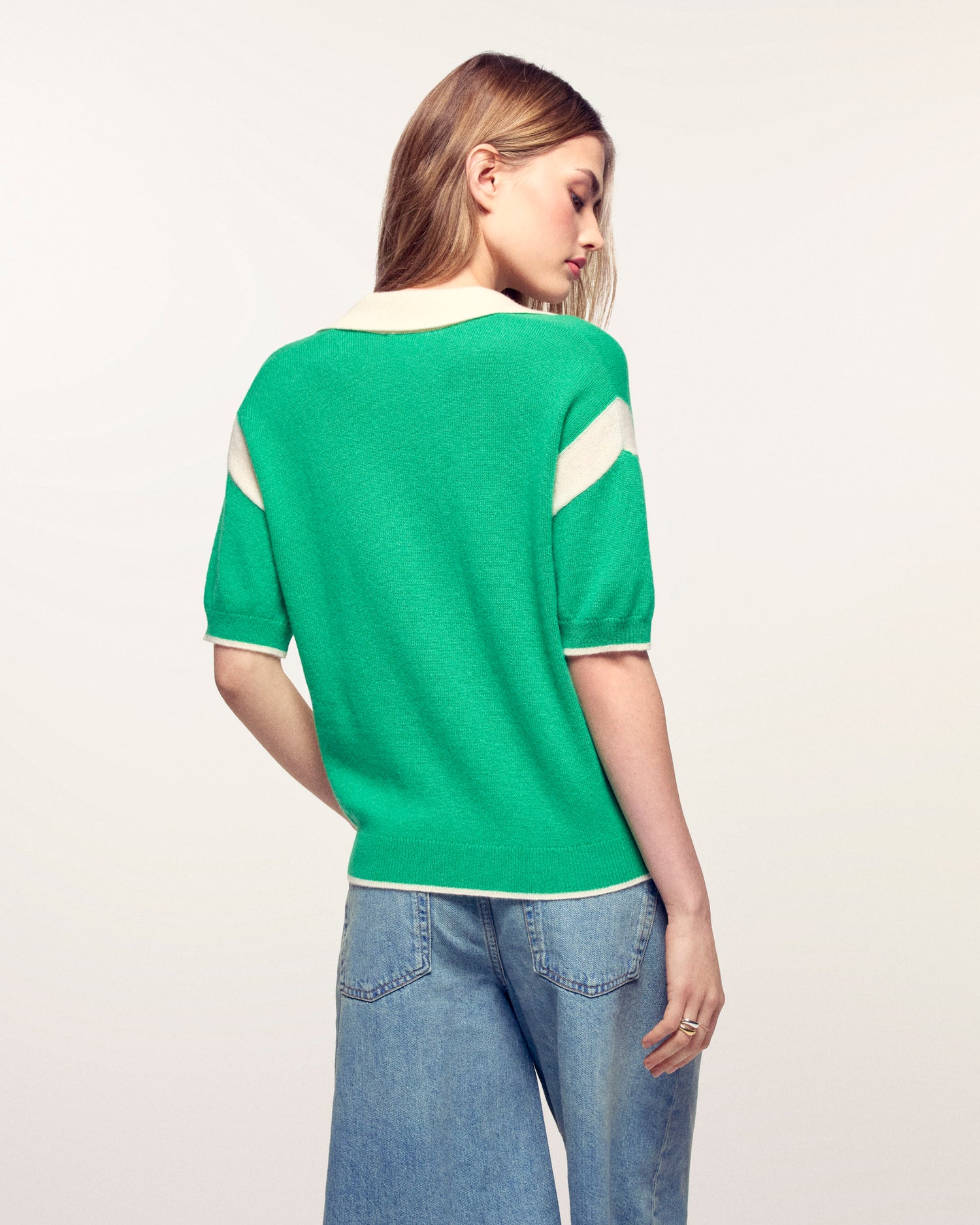 Maglione Polo a Maniche Corte con Ricami - 100% Cashmere - Verificato GCS - Garden Party Green
