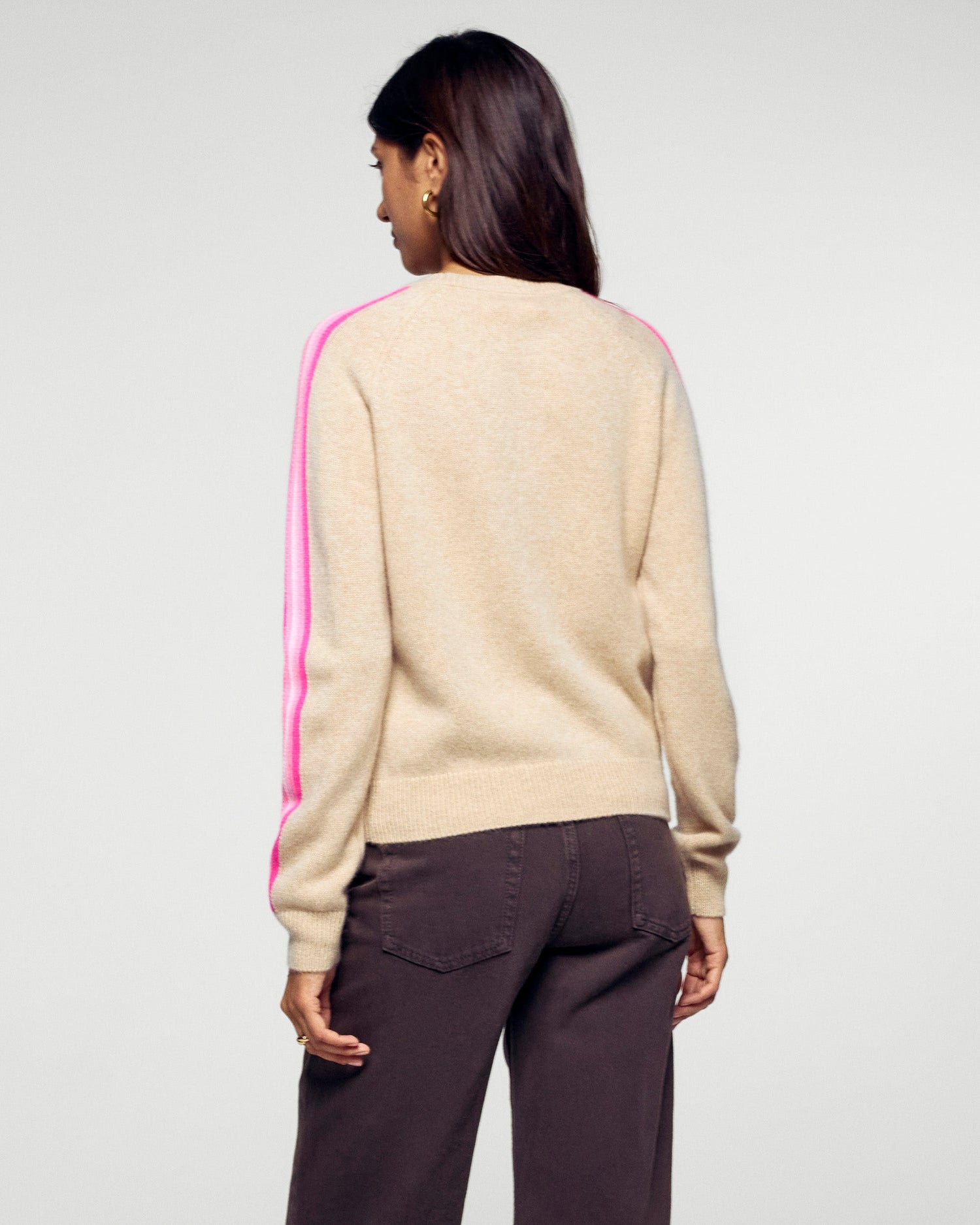 Maglione Girocollo a Righe - 100% Cashmere - Verificato GCS - Mento beige