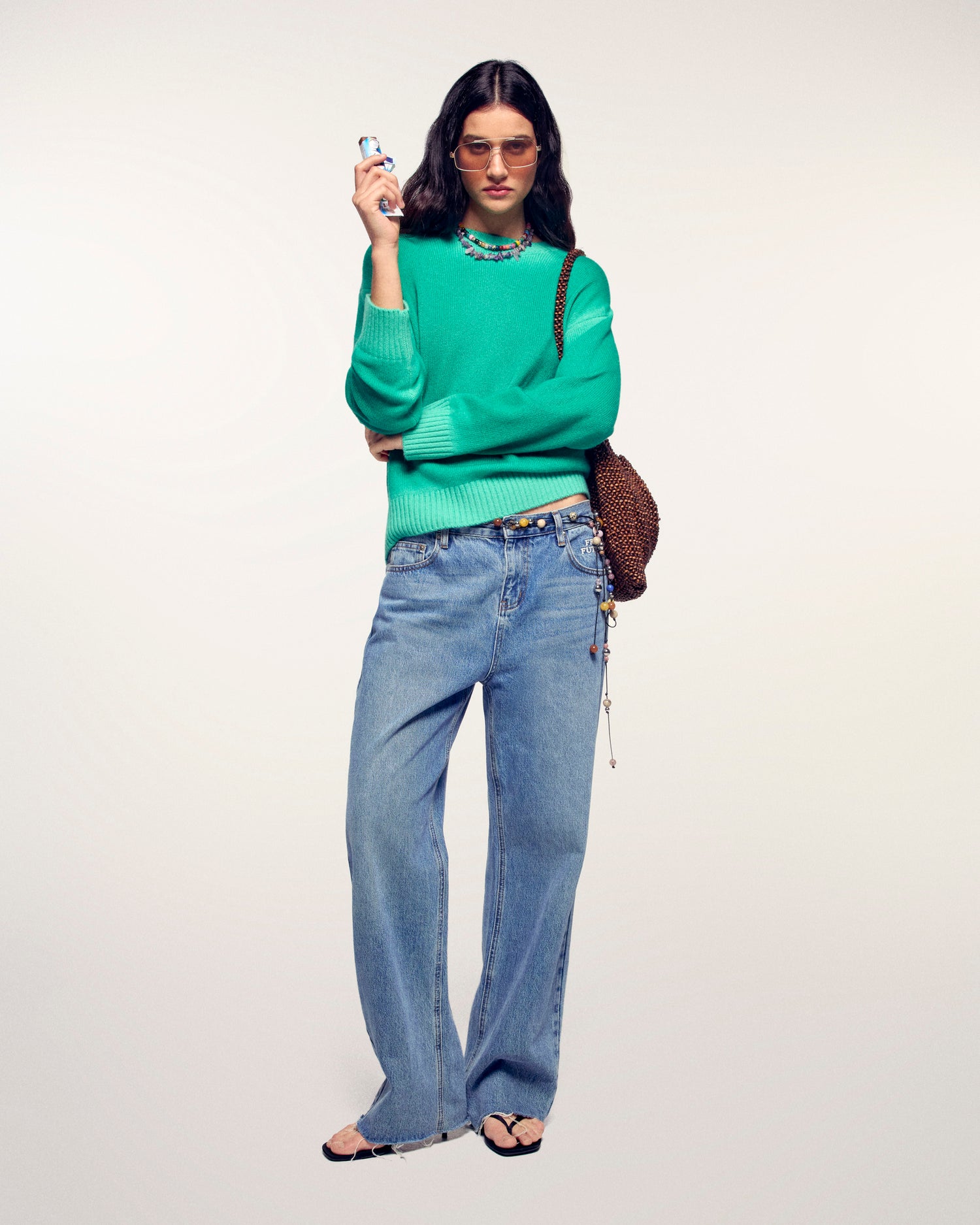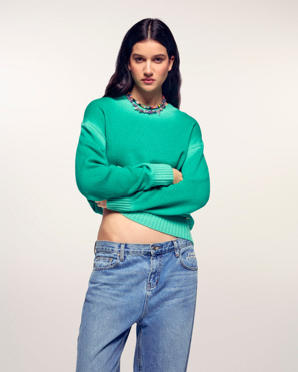 Un capo vibrante e audace che cattura la luce per dinamizzare il vostro look. Questo maglione in cashmere si distingue per la sua colorazione neon dal finissaggio slavato sui bordi, offrendo un aspetto vintage e unico, completato da una placchetta metallica signature per un tocco di sofisticatezza.