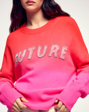 Il maglione audace dal design futuristico. Realizzato in Cashmere 4 fili, questo maglione offre una maglia morbida e una vestibilità confortevole. Il suo taglio regular è reso particolare da una grande patch ricamata con la scritta "FUTURE" in perle, che aggiunge un tocco scintillante e ultra-moderno.