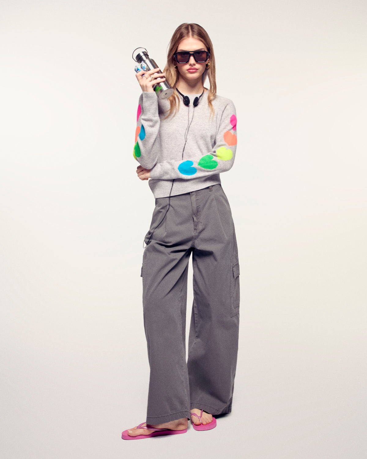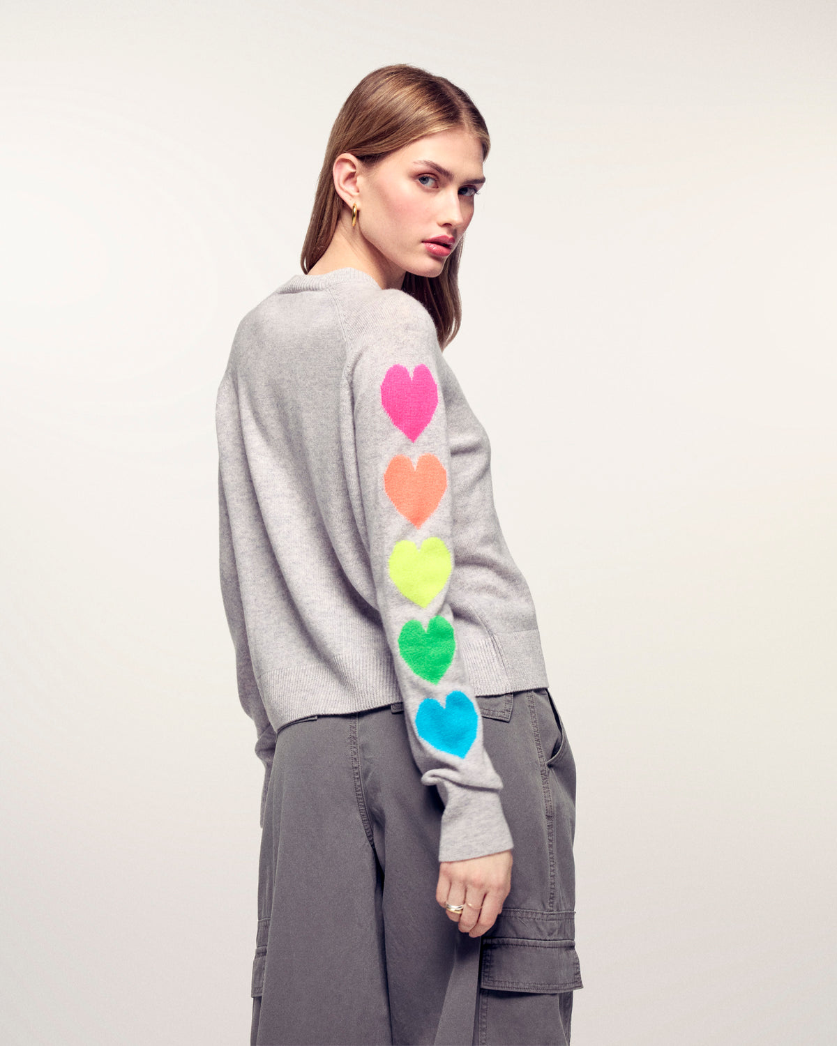 - Motifs cœurs multicolores sur les manches