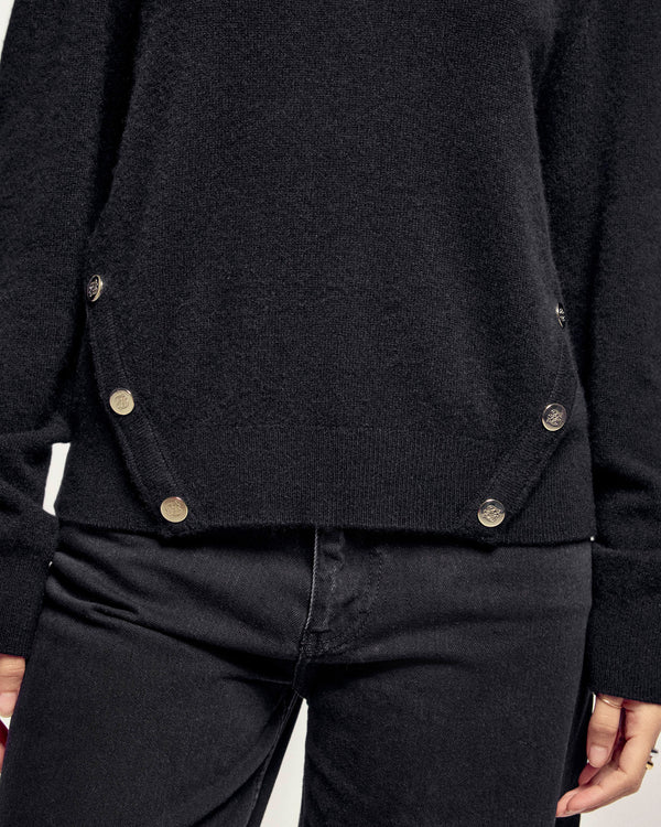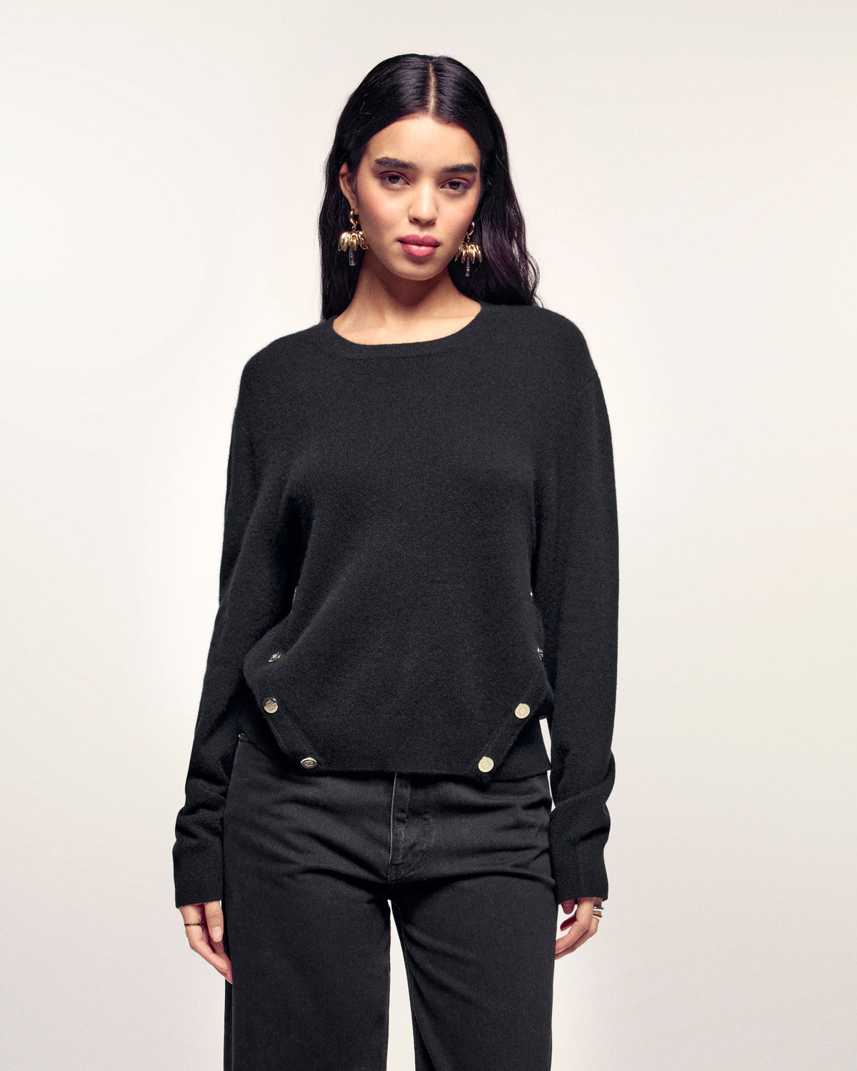 Maglione Girocollo con Bottoni Dorati a Cuore - 100% Cashmere - Verificato GCS - Nero