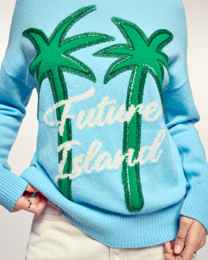 Maglione Girocollo con Motivo Palme - 100% Cashmere - Verificato GCS - Vacation Blue