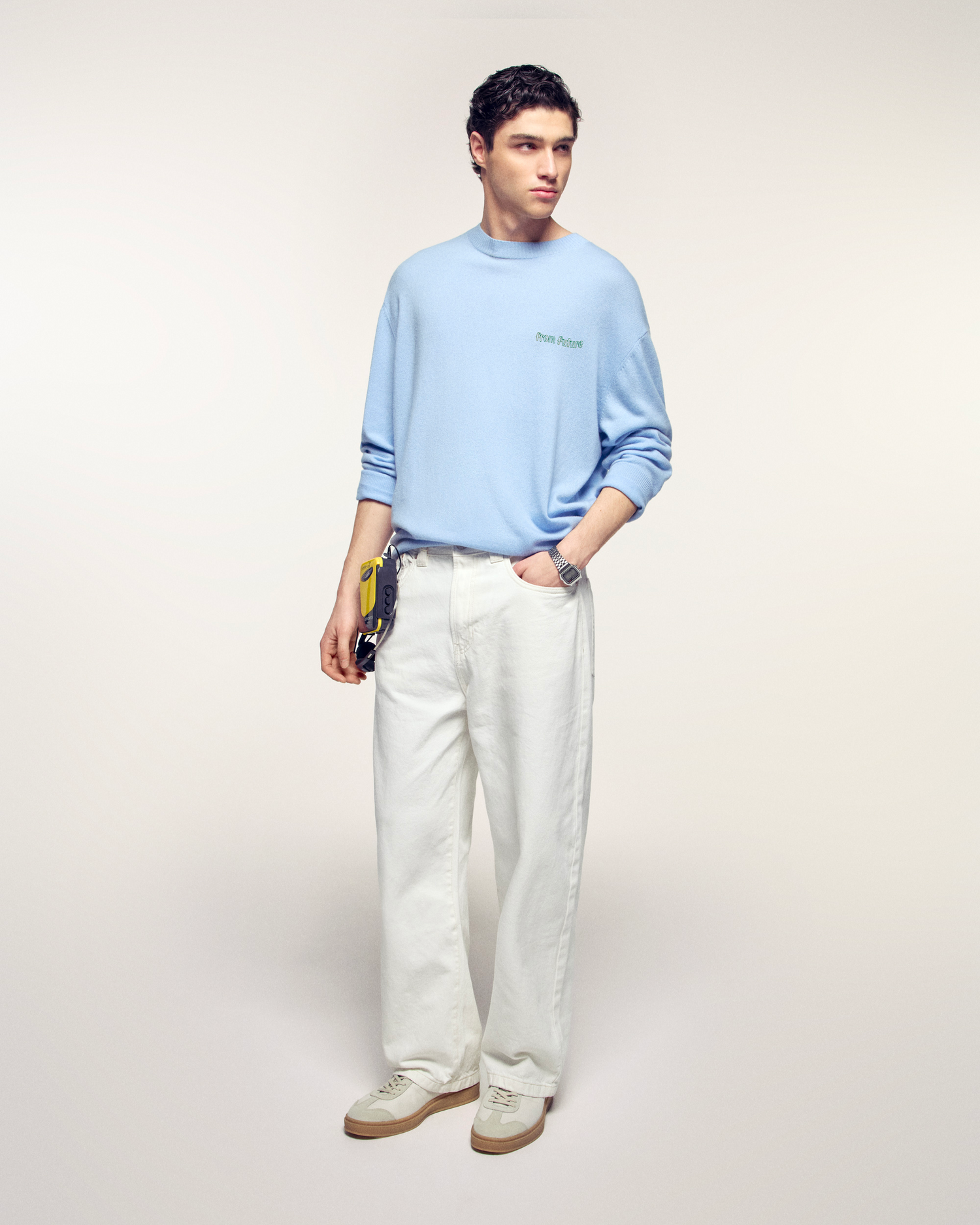 La tua dose quotidiana di buon umore. Realizzato in Cashmere 2 fili, questo maglione offre un comfort eccezionale. La sua vestibilità regular intramontabile è vivacizzata da un grande motivo a intarsio sul retro, che rappresenta limoni con il messaggio "Juicy & Fresh your daily dose of vitamine".
