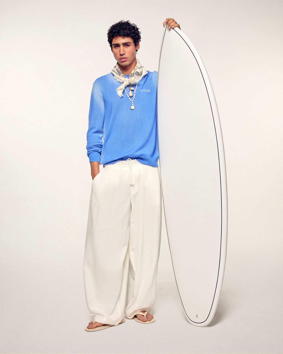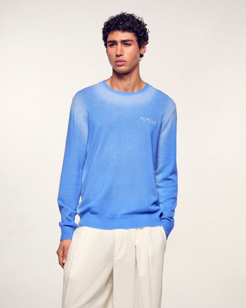 Un maglione audace che gioca su texture e sfumature grazie al suo unico effetto lavato. Impreziosito dalla stampa "FUTURE", dona un tocco contemporaneo e grafico ai vostri outfit di stagione.