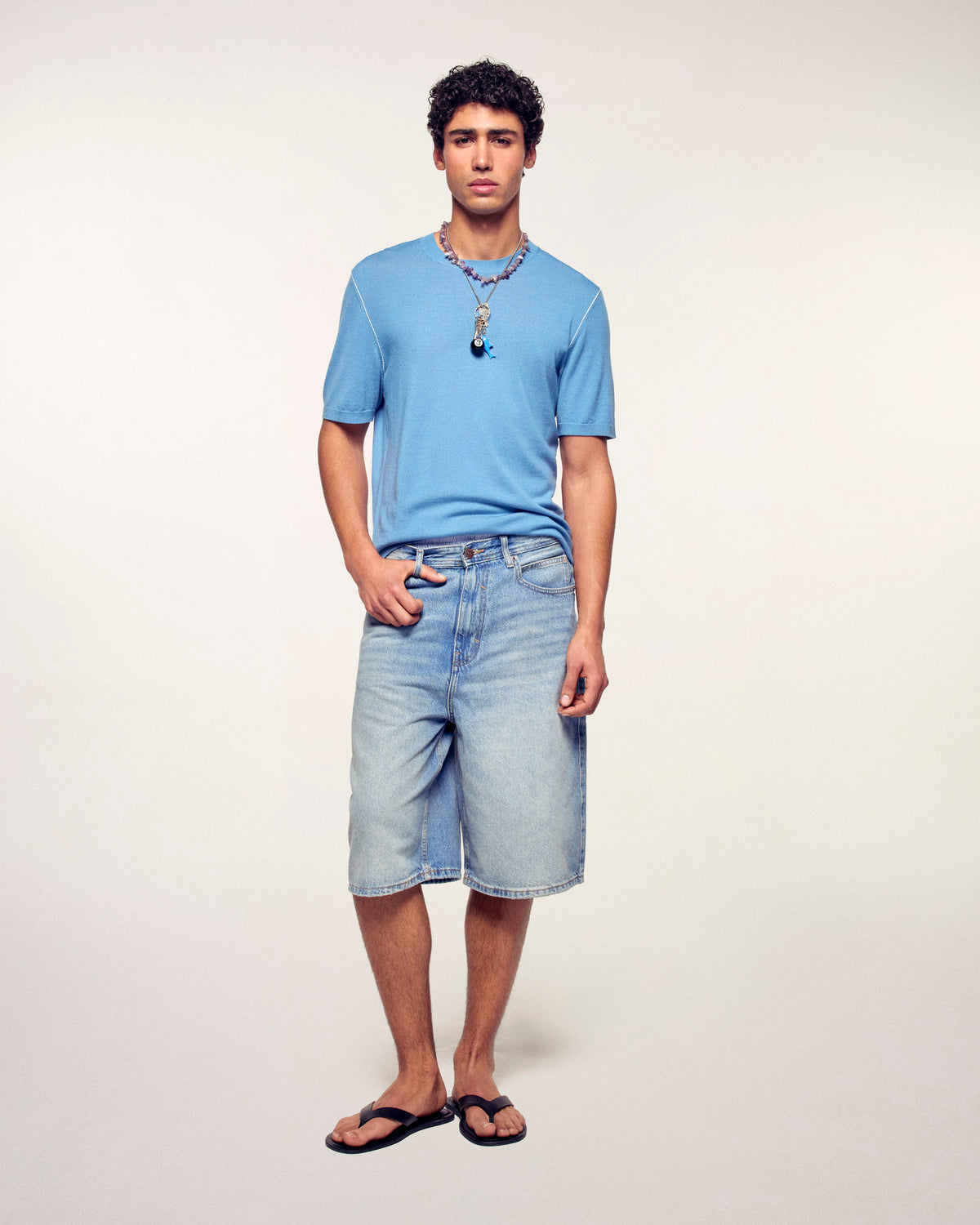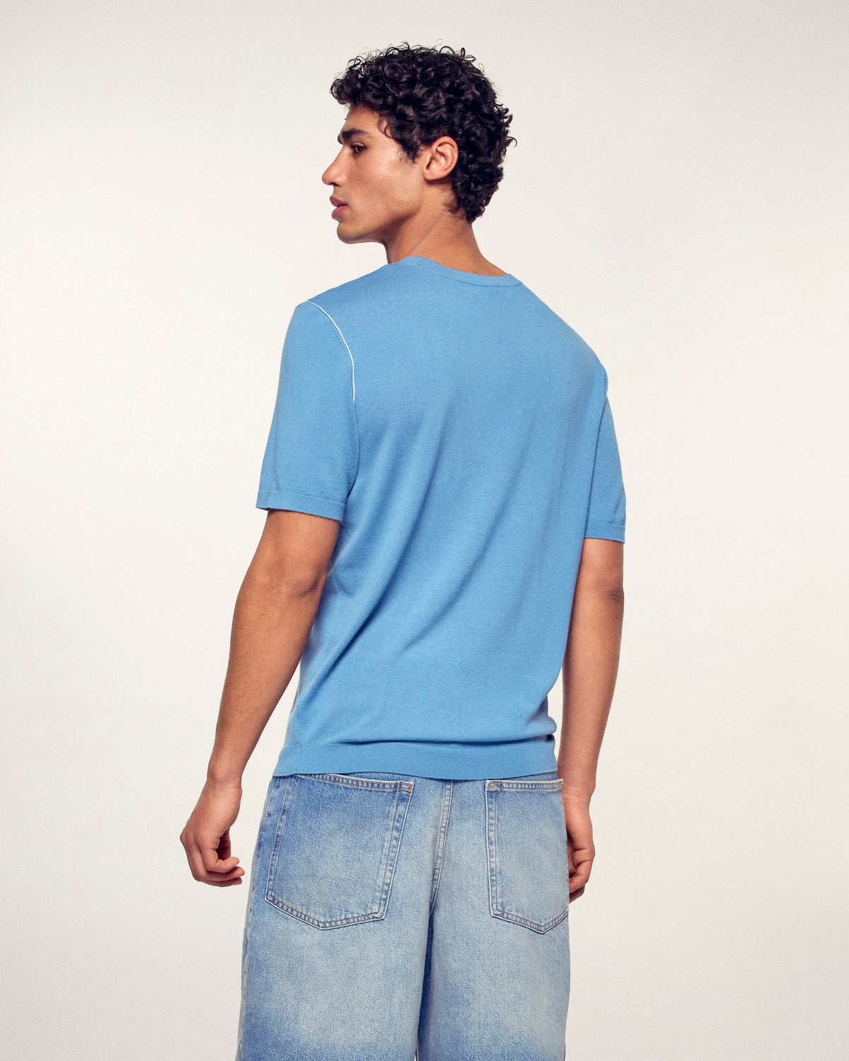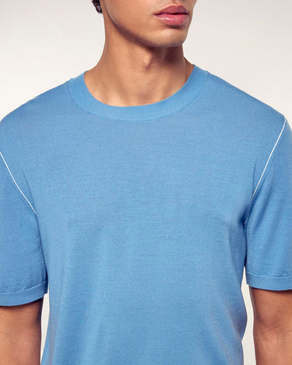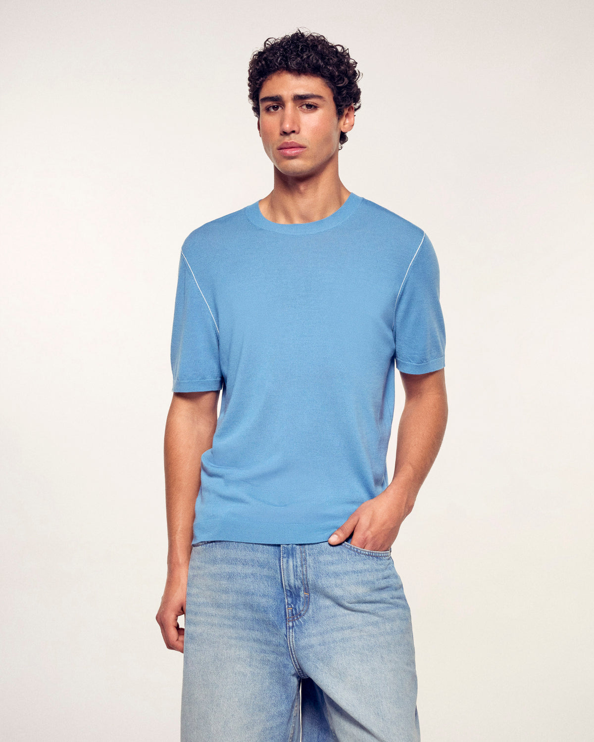 Un capo minimalista ed elegante, realizzato in lana merino per un'assoluta leggerezza. Questo maglione a maniche corte si distingue per i suoi sottili bordi a contrasto che sottolineano delicatamente la silhouette per uno stile moderno e raffinato.