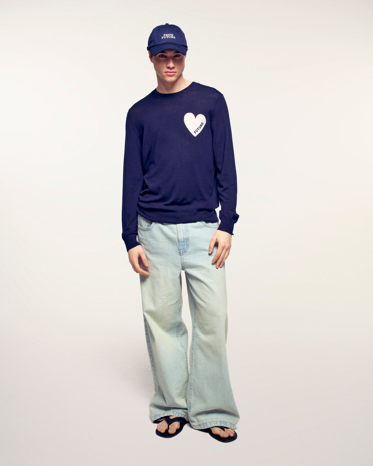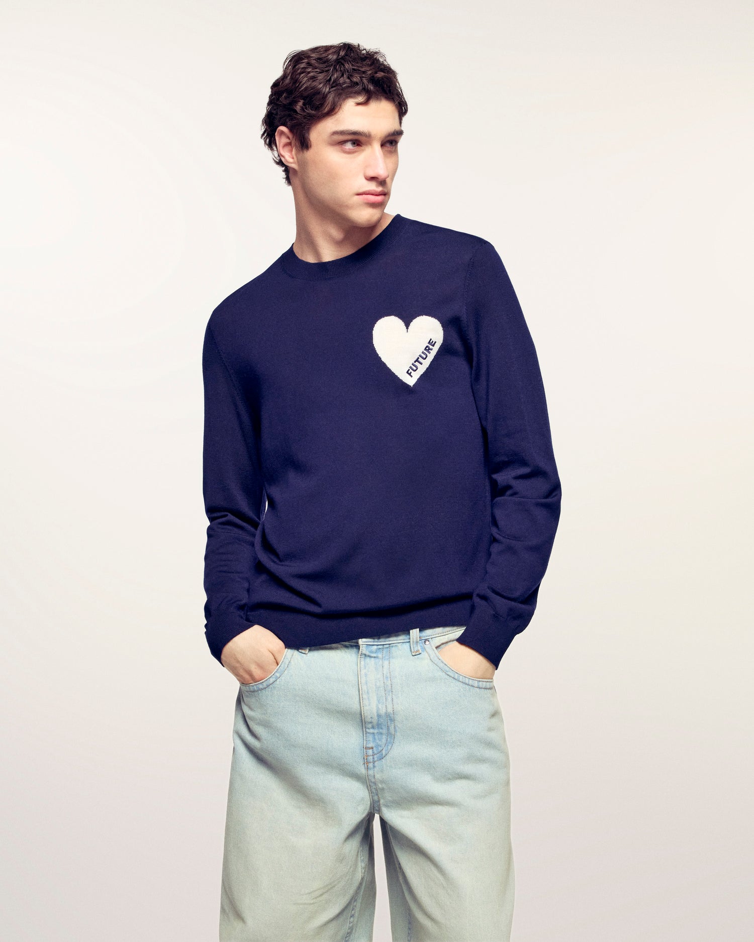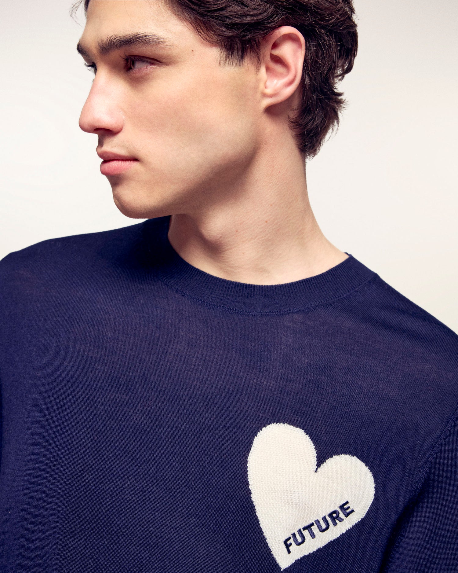 - Motivo a cuore in jacquard con ricamo "Future" sul petto
