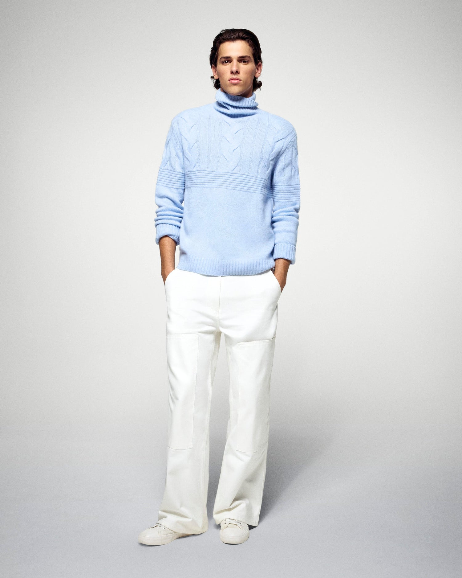 Confezionato in Cashmere, questo maglione è vivacizzato da un delicato gioco di intrecci. Con un collo a dolcevita, maniche lunghe e bordi a coste, regala al tuo look uno stile elegante e senza tempo. Completa il tuo outfit con un paio di pantaloni dritti e delle sneakers!