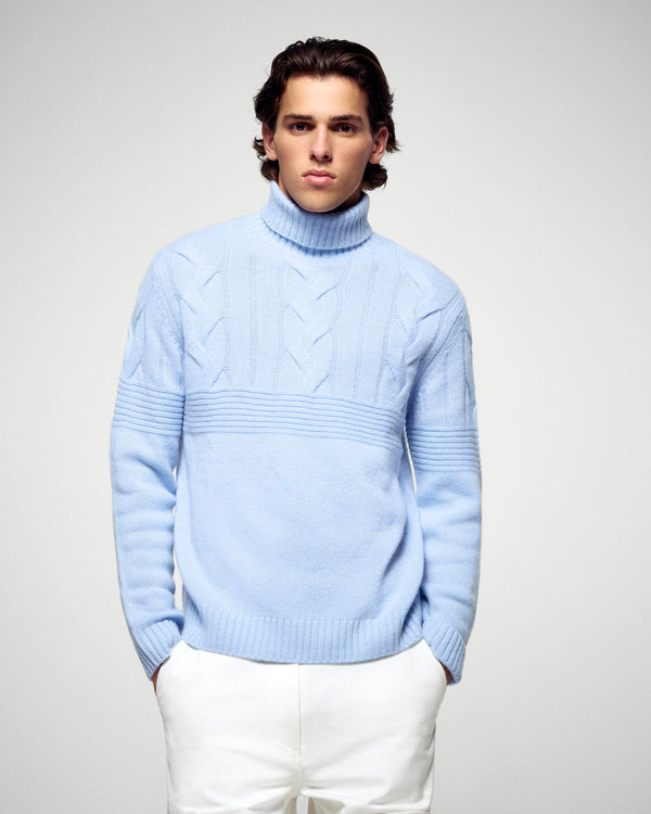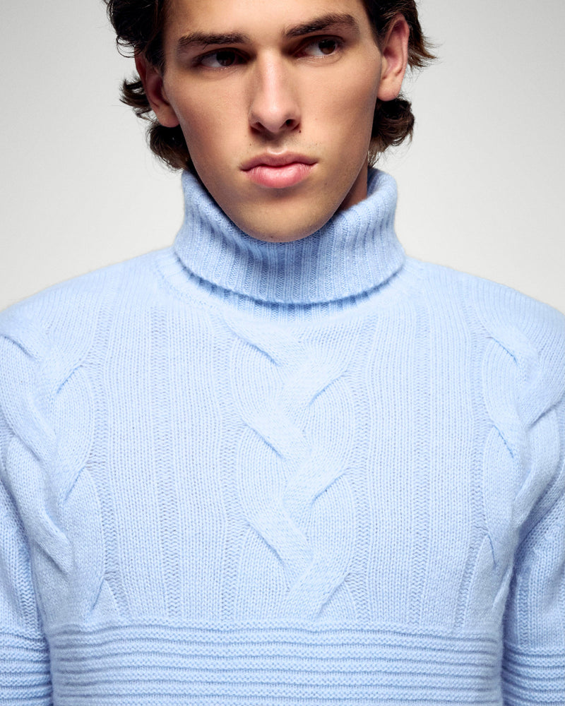 Sweater Maglione Collo Dolcevita - 100% Cashmere - Verificato GCS - Smooth Blue