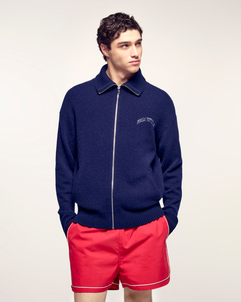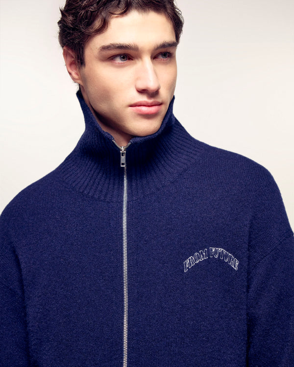 Questo cardigan con zip è realizzato in puro cashmere, garantendo calore e morbidezza eccezionali. Il taglio classico e il collo a lupetto lo rendono un capo intramontabile, impreziosito dal ricamo della firma "FROM FUTURE".