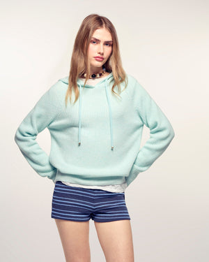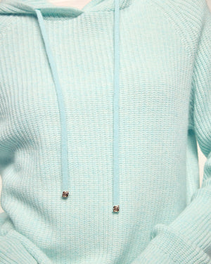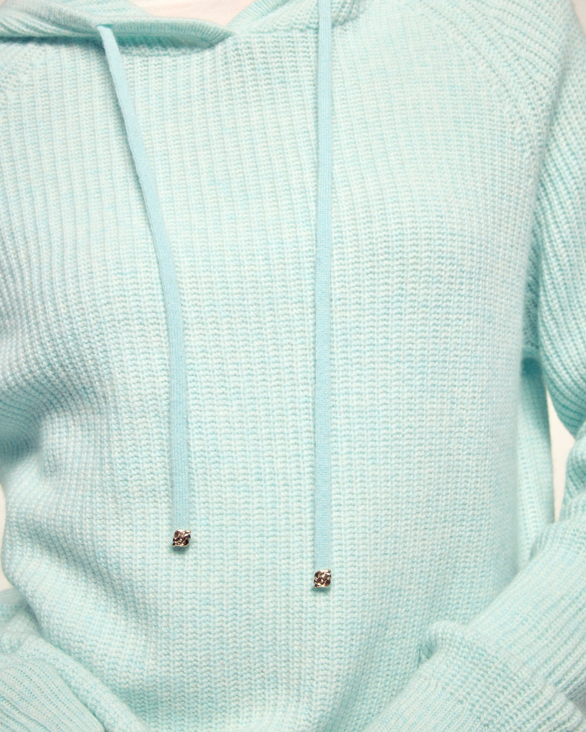 Felpa con cappuccio e cordoncini gioiello dorati - Lana Cashmere - Island Blue