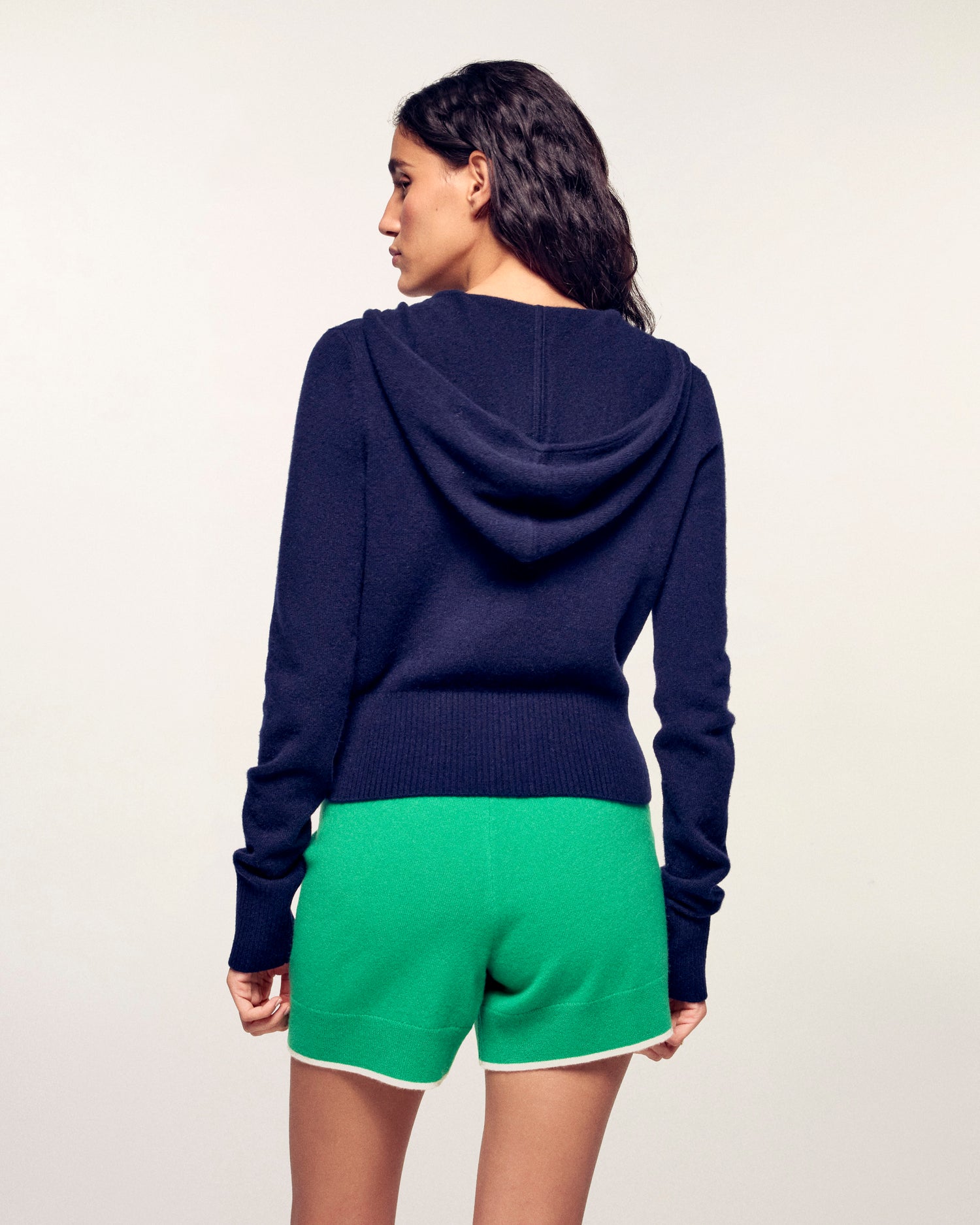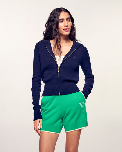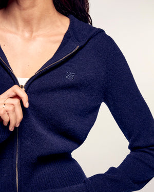 Una silhouette casual e lussuosa che reinterpreta i codici dello sportswear con eleganza. Questo maglione con cappuccio in leggero cashmere si distingue per la chiusura lampo in metallo dorato, che dona un tocco di luce e sofisticatezza a un capo essenziale del quotidiano.
