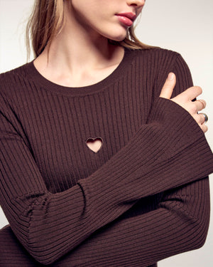 Abito Corto Maniche Lunghe con Cuore Traforato - 100% Lana Merino - Certificato RWS - Cioccolato