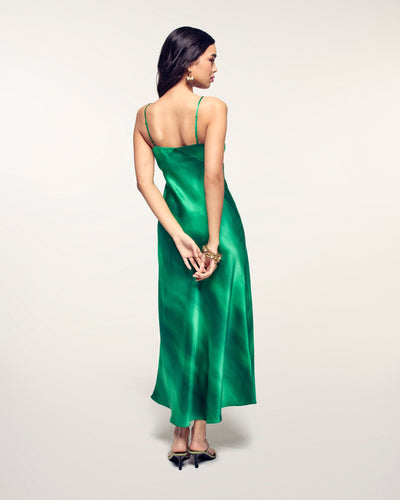 Abito Lungo a Spalline - Seta - Palm Green Samba