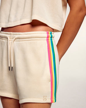 Una silhouette dinamica e moderna per questo mini short realizzato in cotone a coste elasticizzato. Sfoggia le iconiche righe multicolore del guardaroba FROM FUTURE lungo i lati, impreziosite da un discreto logo ricamato sul davanti. Il suo taglio aderente lo rende un capo essenziale per un look estivo al contempo confortevole e di tendenza.