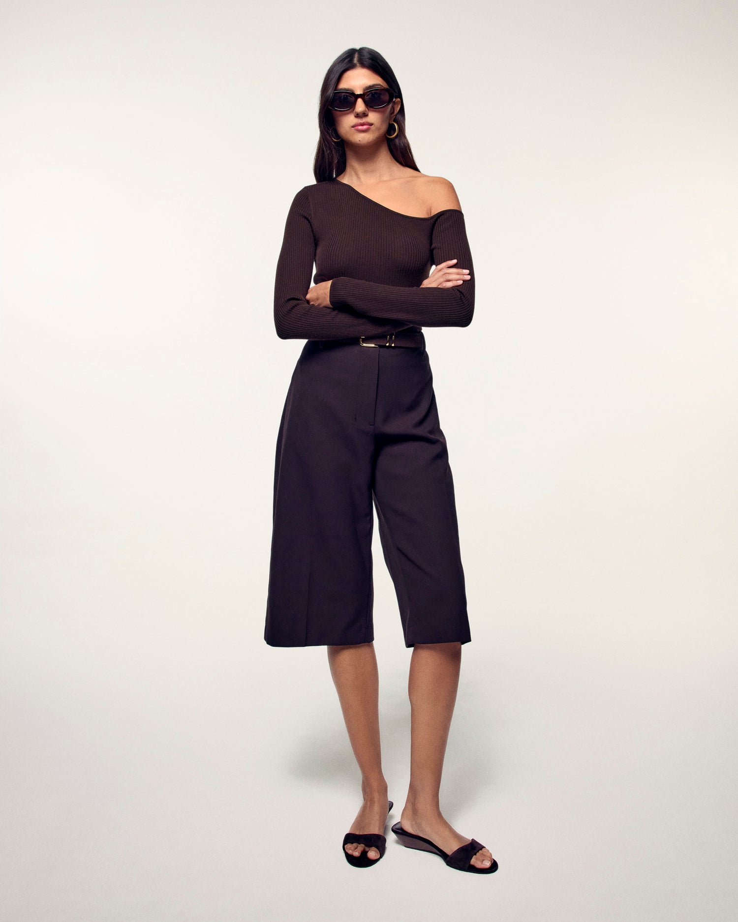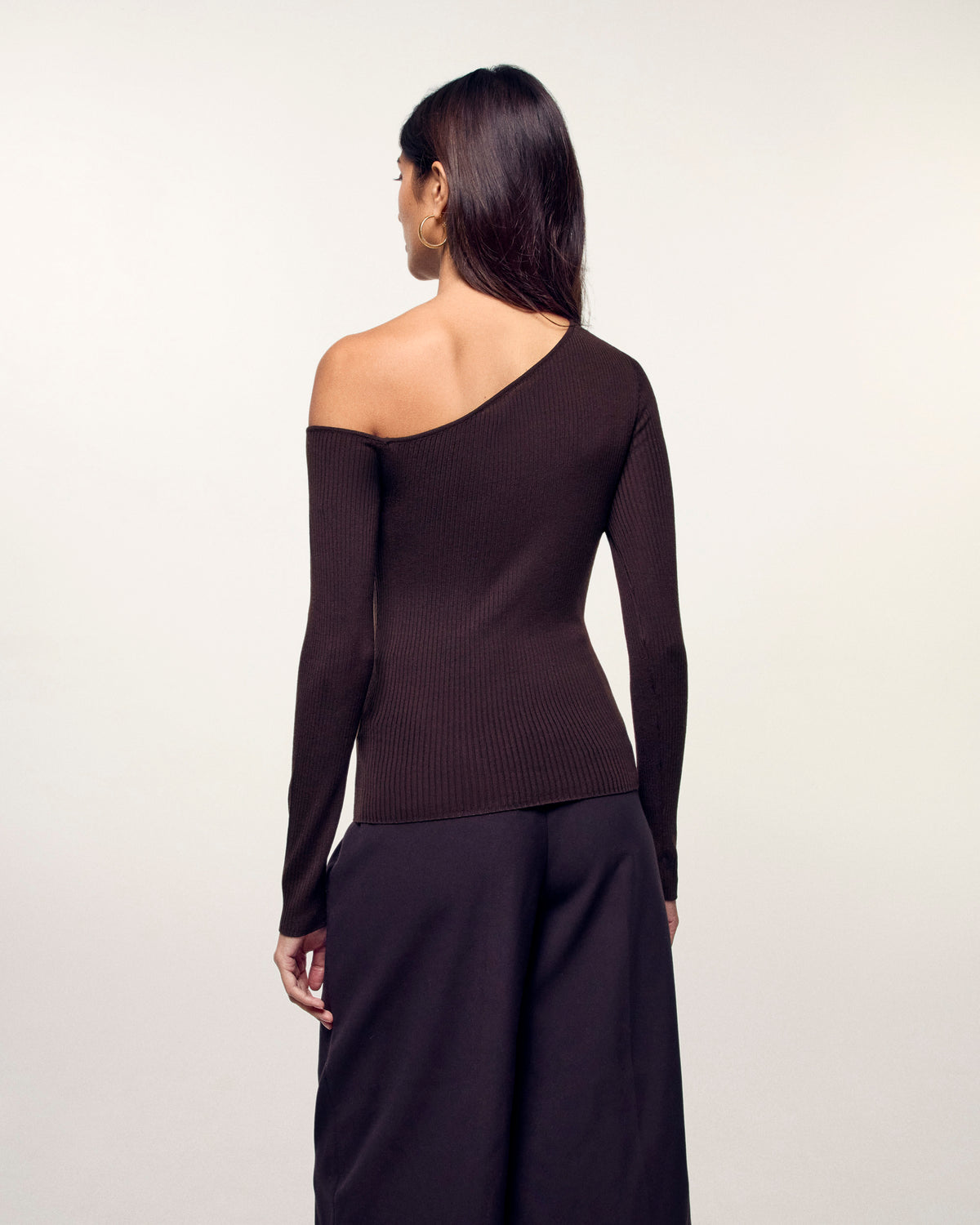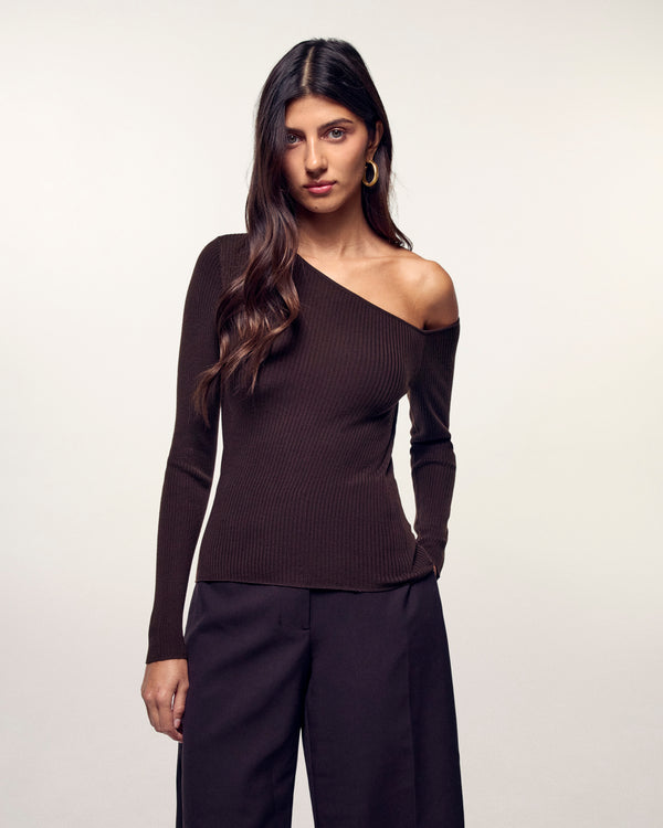 Ideale sia di giorno che di notte, questo top corto si presta a ogni occasione. Realizzato in lana merino 2 fili, rivela un look strutturato con scollo asimmetrico e maniche lunghe. Da abbinare a pantaloni larghi o a una gonna fluida per un look sofisticato.