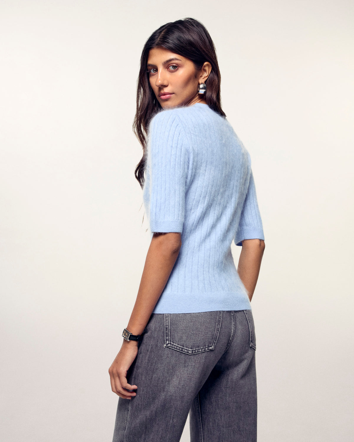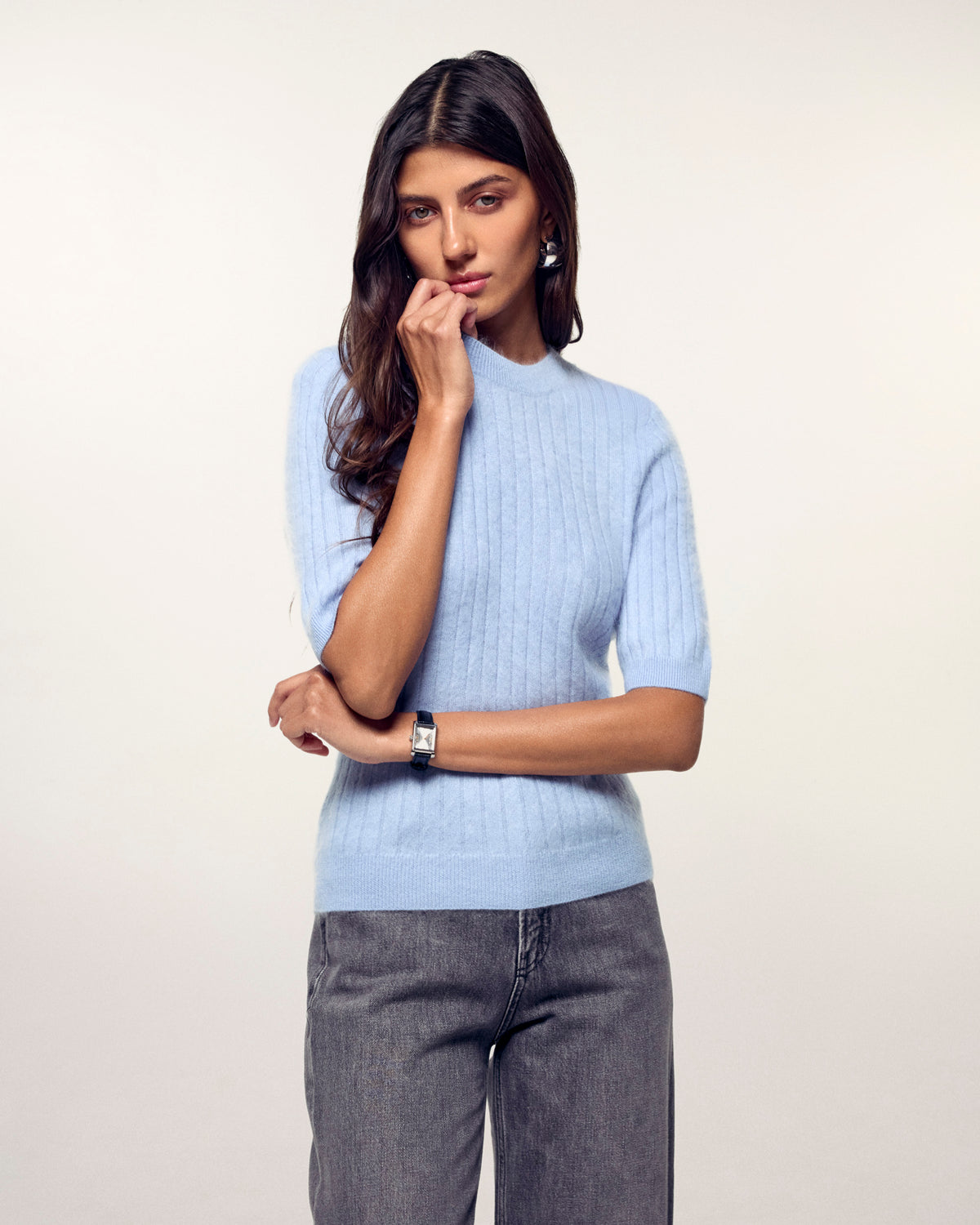 Un top in cashmere morbido e moderno, con maniche corte e righe verticali in rilievo. - Top a maniche corte in cashmere 2 fili certificato GCS - Righe verticali strutturate - Maglia Brushed - Vestibilità regular - Cashmere 2 fili - Il Good Cashmere Standard® (GCS) è uno standard indipendente per un cashmere più sostenibile e responsabile. Ha l'obiettivo di migliorare il benessere delle capre cashmere e le condizioni di lavoro degli allevatori, oltre a proteggere l'ambiente